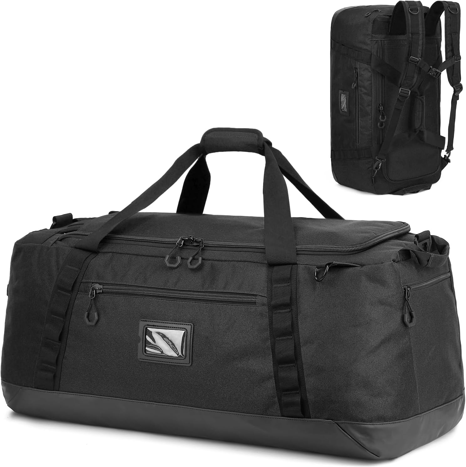 TUGUAN Extra Large Travel Duffle Bag Backpack for Men with Adjustable Dividers 120L Big Weekend Overnight Bag with ID Pocket Shoulder Strap Heavy Duty Sports Duffel Bags for Camping Gym, Black