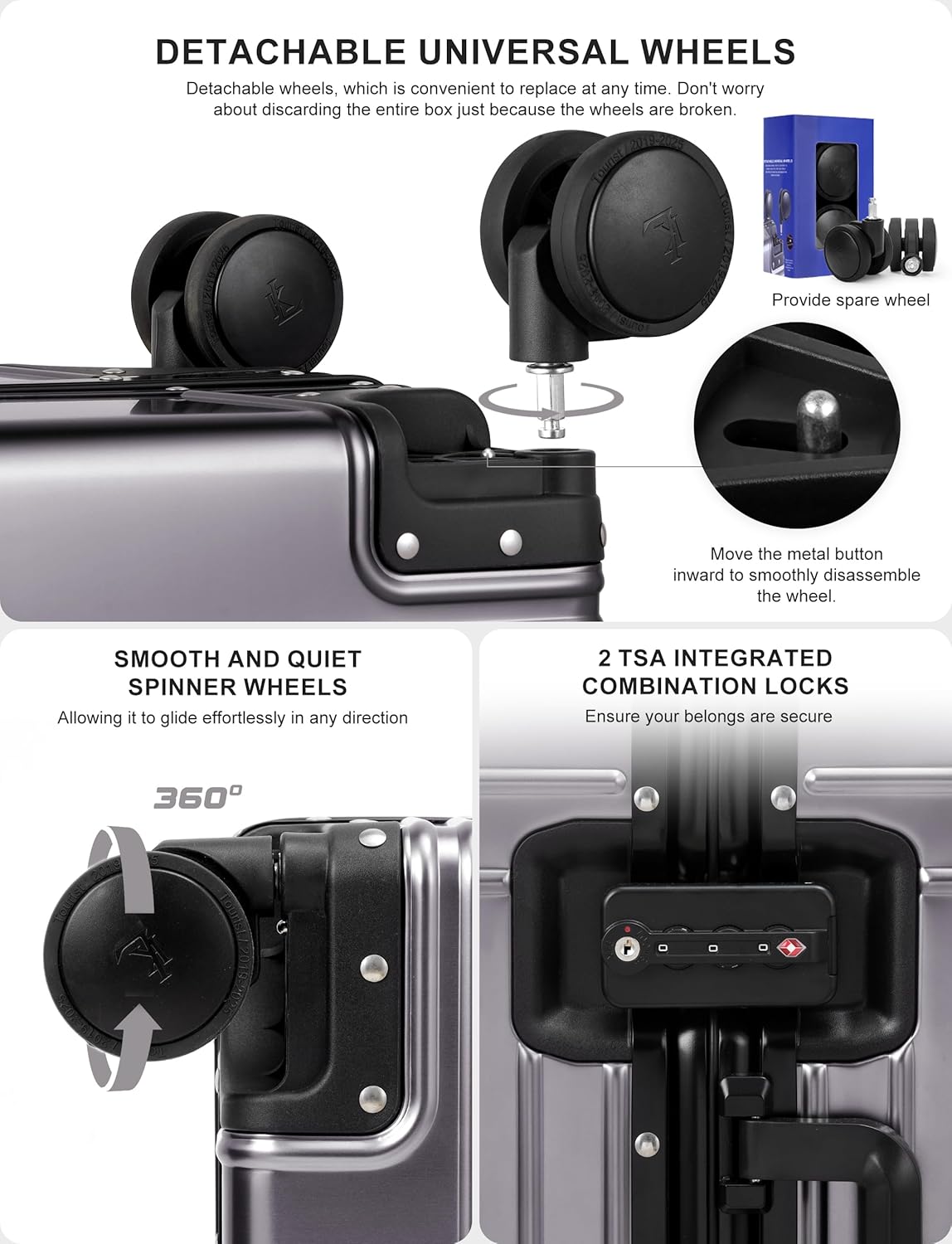 All Aluminum Magnesium 28inch LuggageοΌCut from Whole Aluminum SheetοΌ3rd Generation,Premium Metal zipperless suitcase οΌ (grey, 28inch)