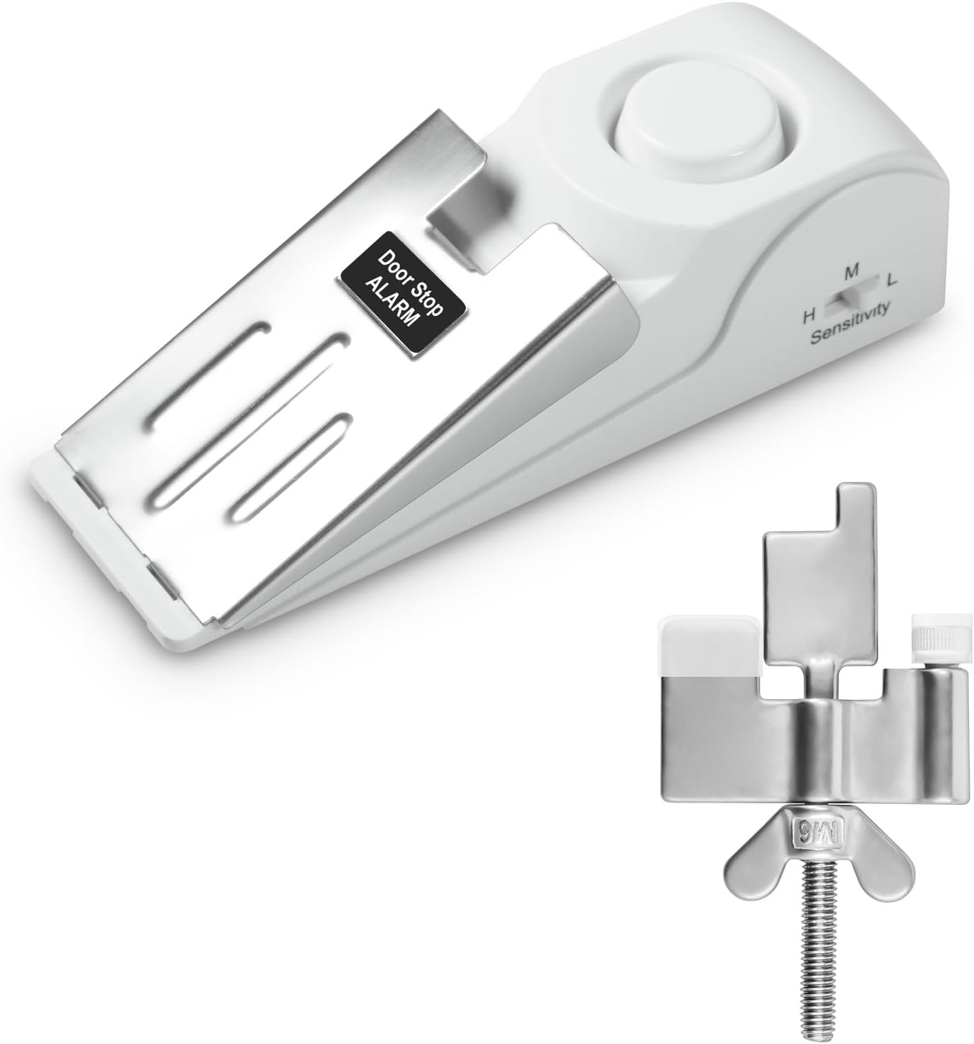 1 Pack 120dB Travel Door Stopper Alarm & Portable Door Lock, 3-Level Sensitivity Adjustable Travel Security Wedge for Hotel Home Apartment Dorm