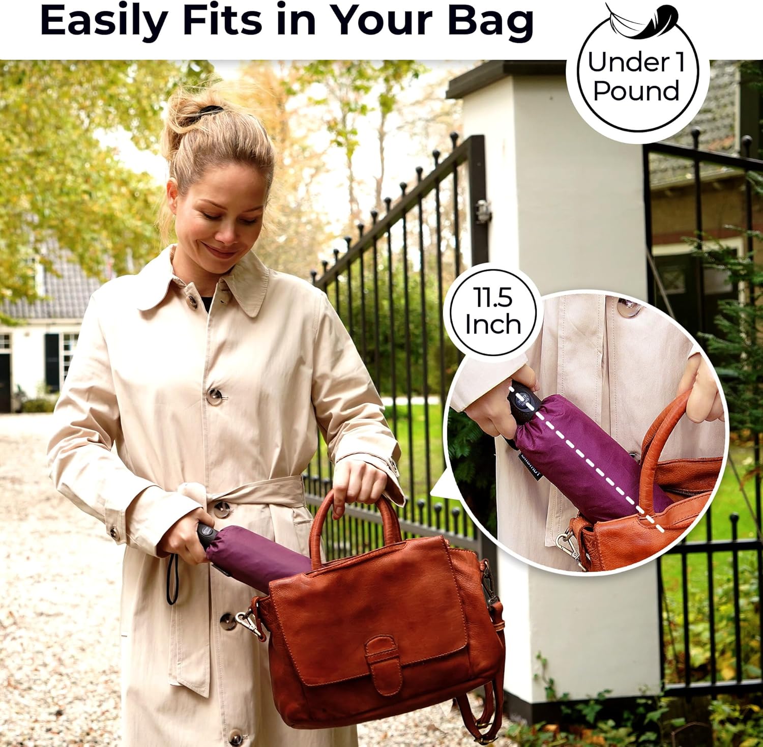 TUMELLA Strongest Windproof Travel Umbrella (Compact, Superior & Beautiful), Small Strong but Light Portable and Automatic Folding Rain Umbrella, Durable Premium Grip, Fits Car & Backpack