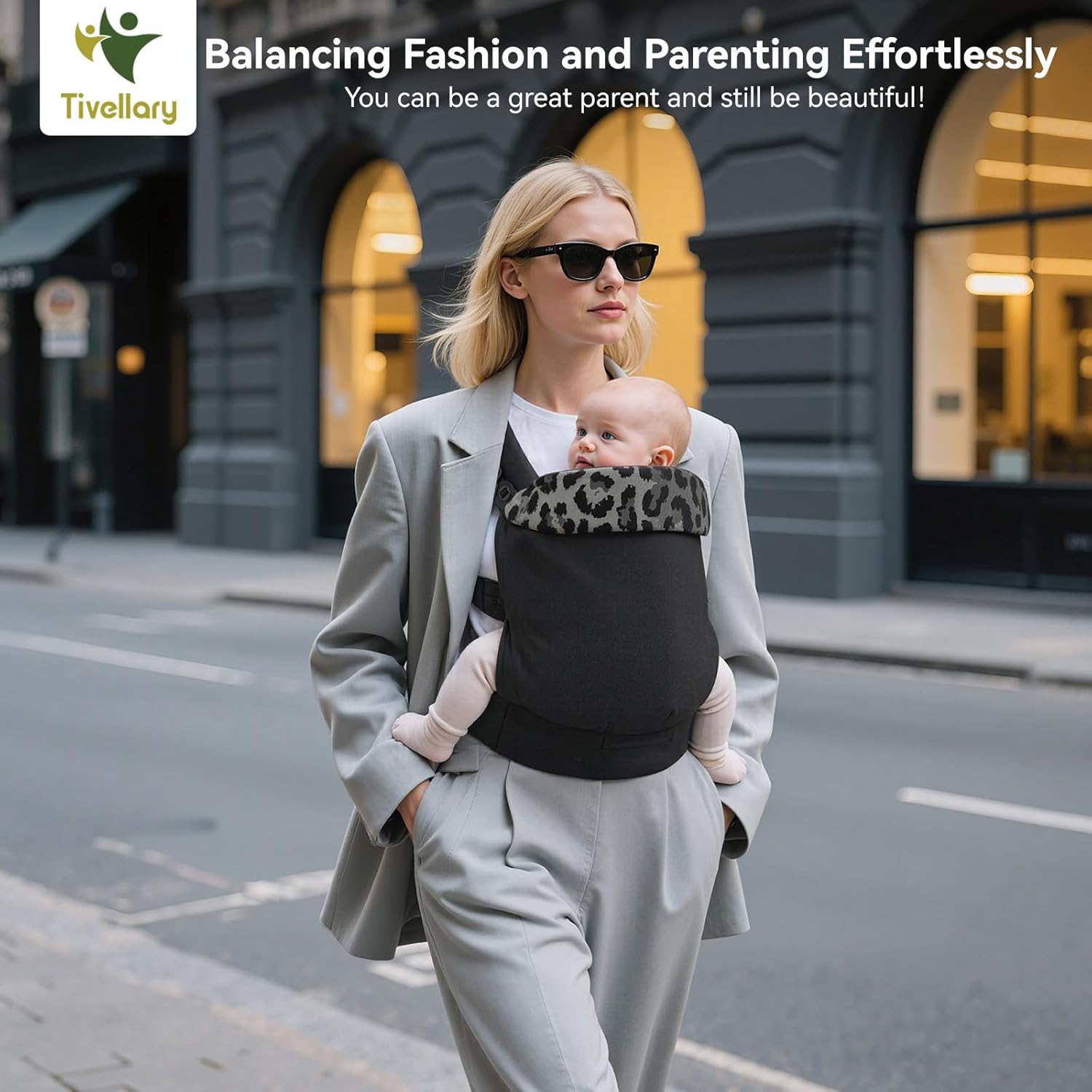 Reversible Baby Carrier – Black Solid & Leopard Print; Lightweight & Breathable Lyocell Fabric; Ergonomic Lumbar Support and Quick Hands-Free Wear for Newborn to Toddler (7–44 lbs)
