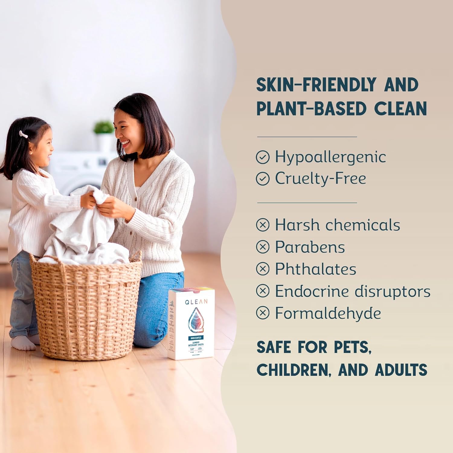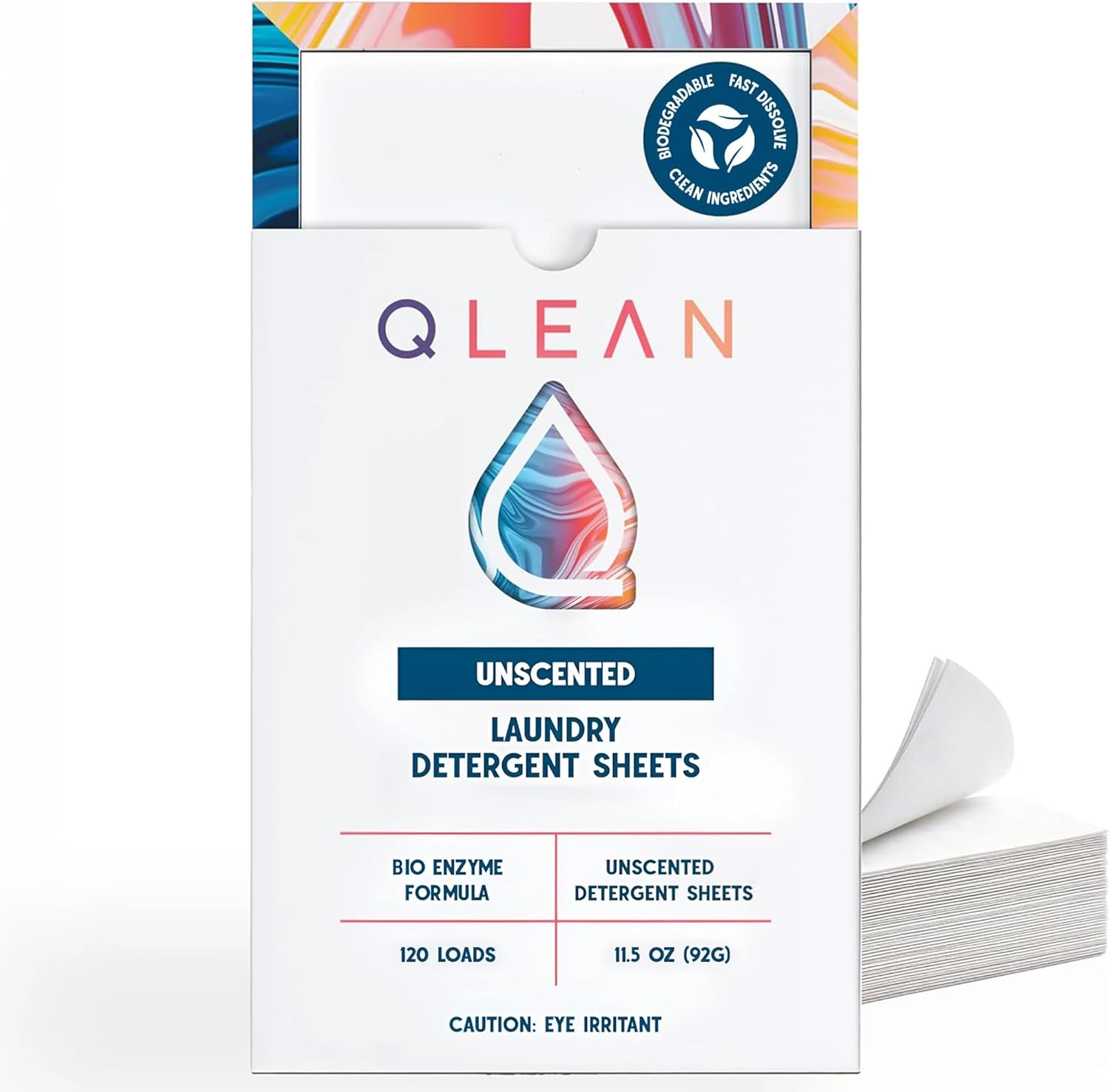 - Low Waste, Maximum Clean: Ditch the plastic jugs. Qlean’s eco laundry detergent sheets are made with plant-based ingredients and designed for a low-waste lifestyle. Bio-enzymes break down stains and odors effectively—without harsh chemicals, dyes, or fillers.