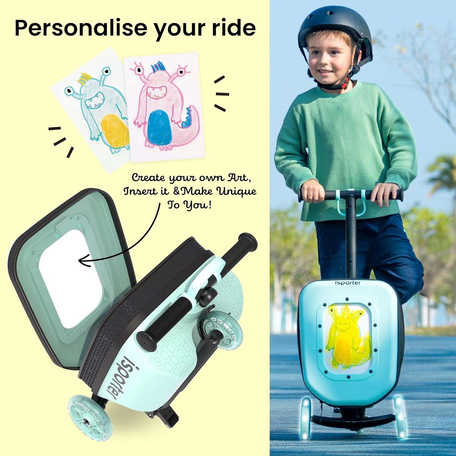 - UNLEASH CREATIVITY ON THE GO: This ride-on suitcase scooter features an A5 clear window where kids can proudly display their artwork while their favorite toys peek out during every adventureāturning travel into a moving masterpiece