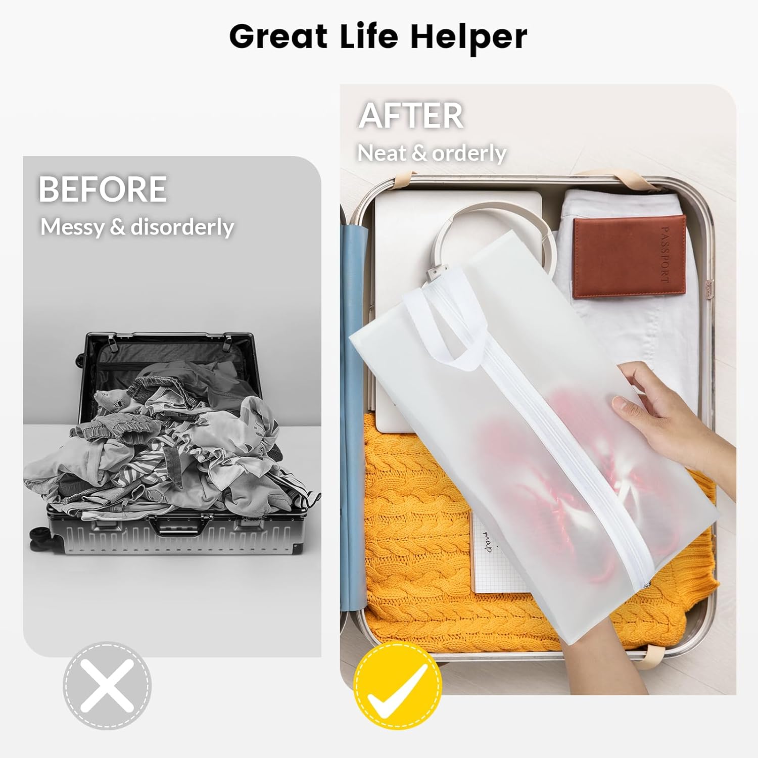- See-through design saves time: The transparent shoe bag design lets you quickly identify contents - no more unzipping to find your shoe storage bag items. Great for shoe organizer bags at home or away
