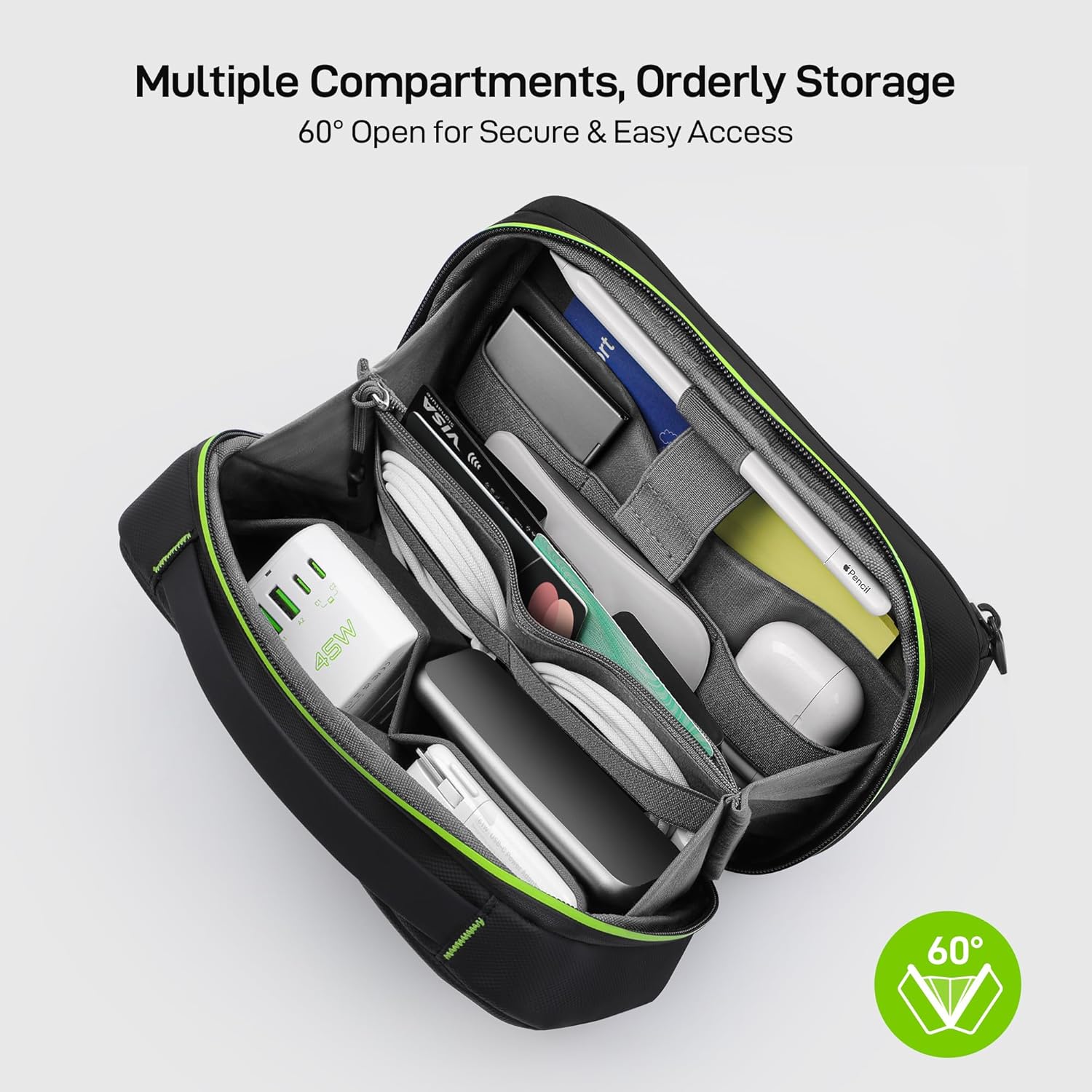 - All-Scenario Organization Master: Water-repellent fabric + business-chic styling transitions effortlessly between tech gear, office supplies, and toiletries. Tame cable chaos at home, breeze through airport security, or impress in boardrooms – one pouch conquers every scenario.