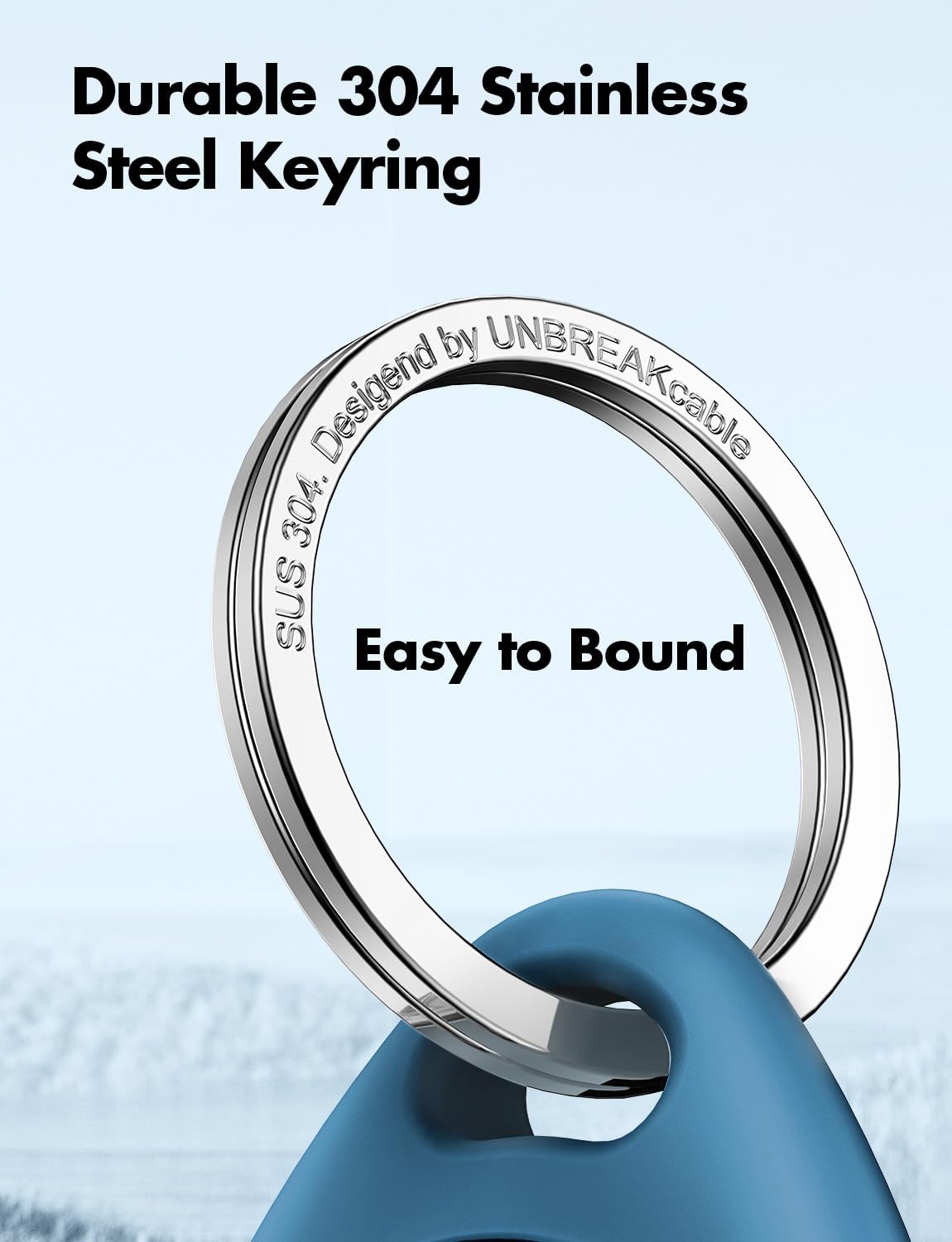 UNBREAKcable Holder for Apple AirTag - 4 Pack [Fit Tightly Design] [Easy to Install] [Hold Air Tag Securely] Waterproof TPU Protective Case with 304 Stainless Steel Keychain Key Ring, Black+Blue