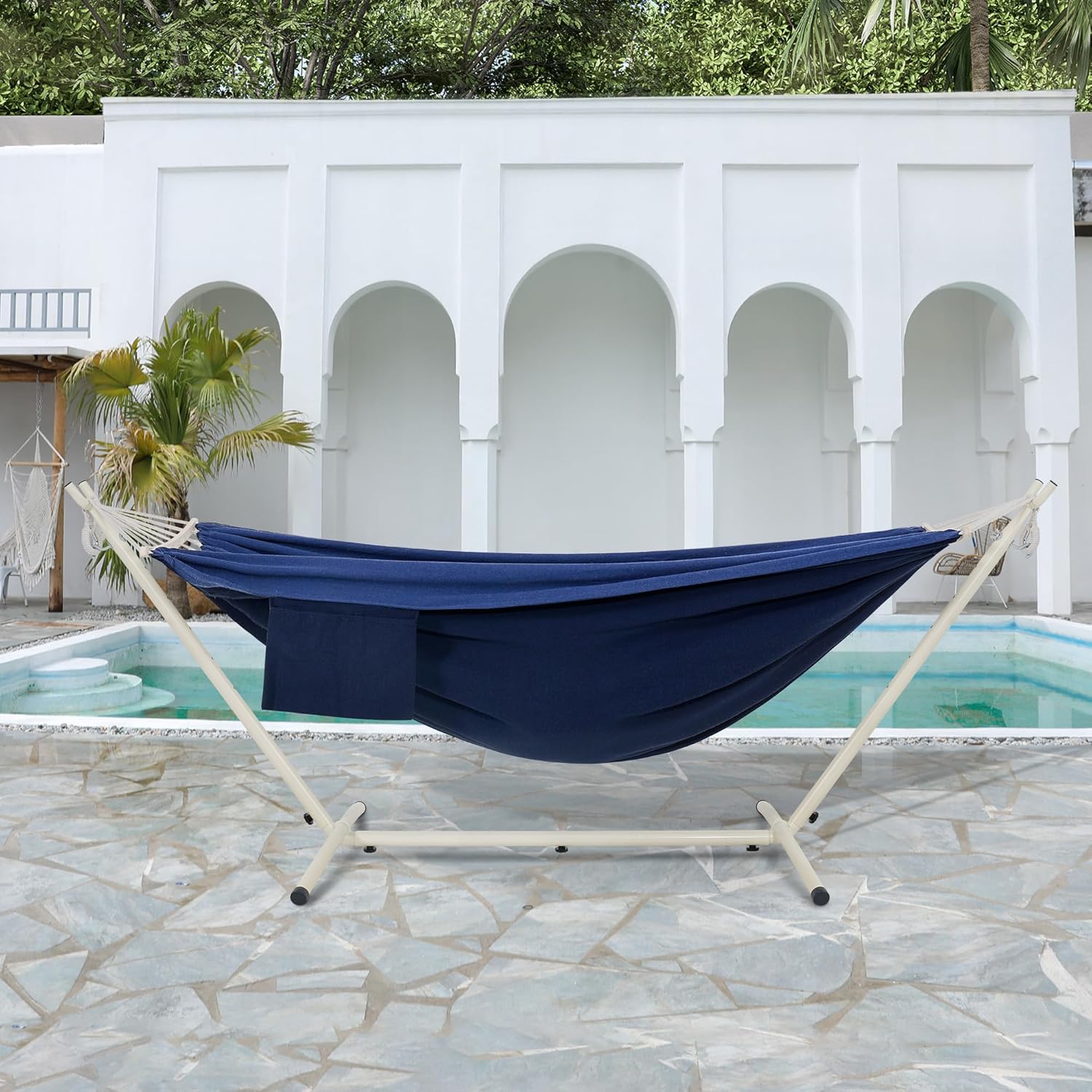 LazyDaze Hammocks Double Hammock with Stand - 2 Person Heavy Duty Outdoor Hammock for Adults, Includes Durable Steel Stand, Portable Carrying Bag and Pillow, Navy Blue