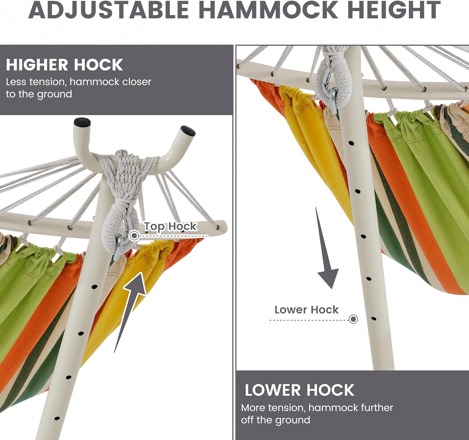 LazyDaze Hammocks Double Hammock with Stand - 2 Person Heavy Duty Outdoor Hammock for Adults, Includes Durable Steel Stand, Portable Carrying Bag and Pillow, Orange Green