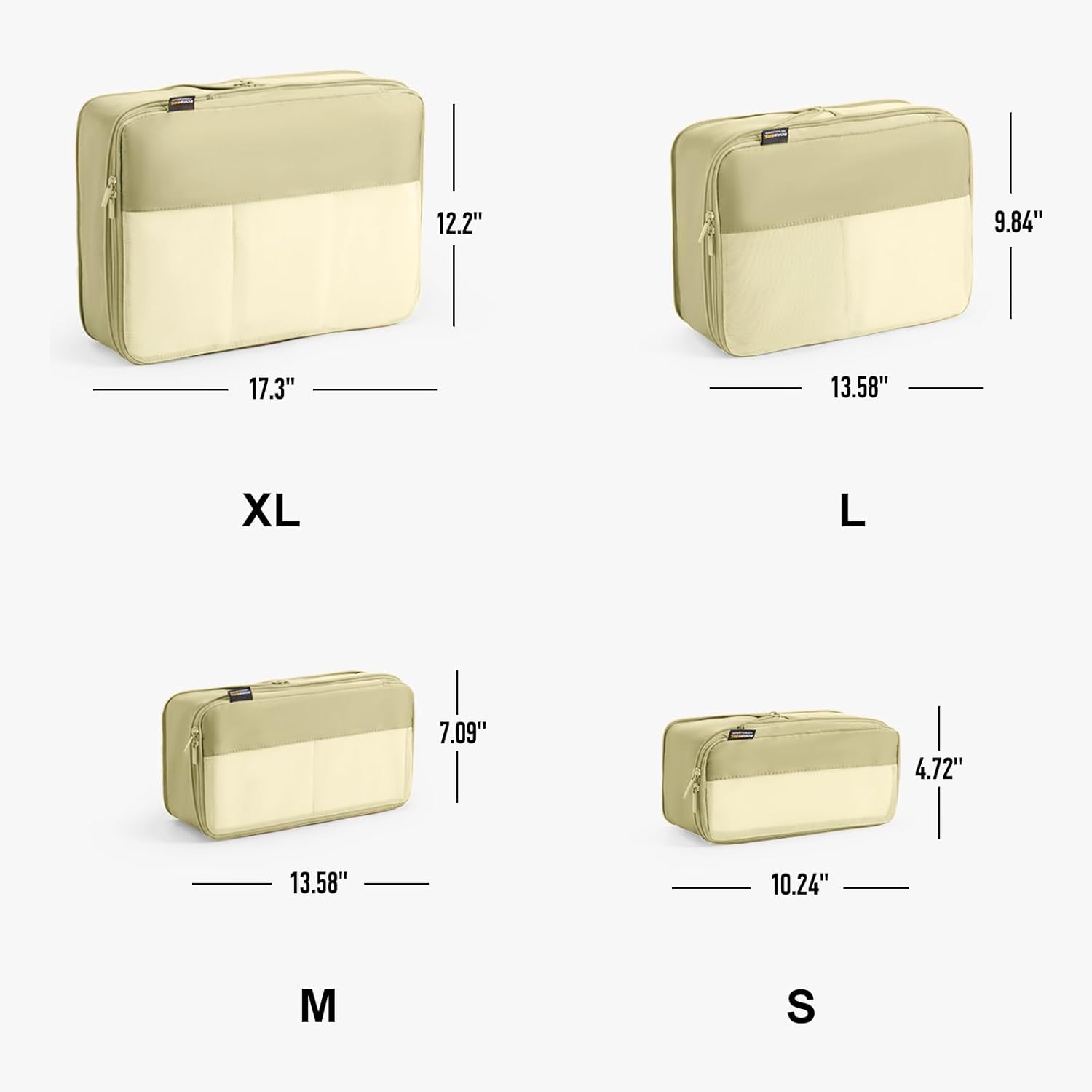 4 Set Compression Packing Cubes for Travel, Suitcases and Backpack Space Saving Organizers (Bright Yellow)