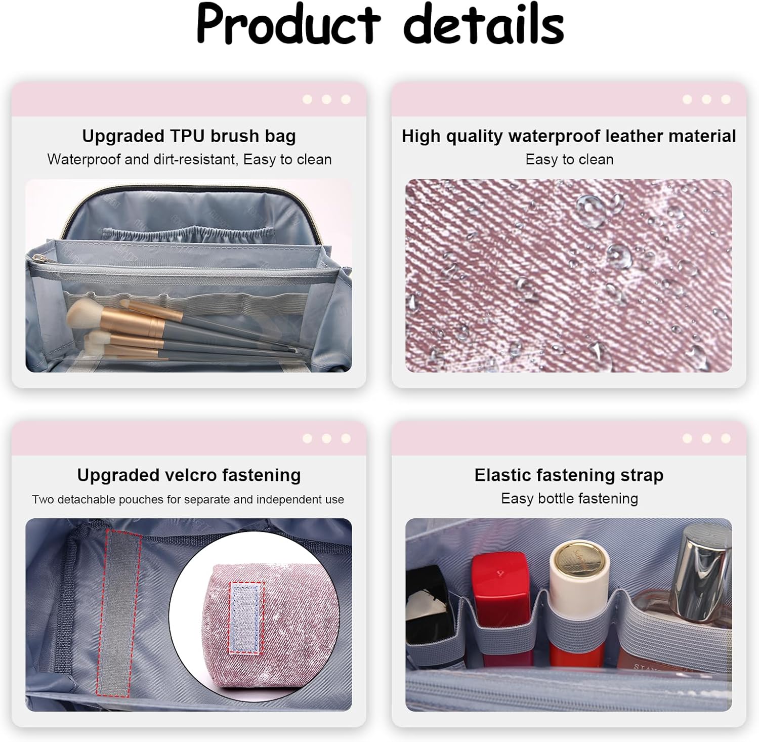 - 3 Pcs Makeup Bags Set: This travel make up bags set comes with two detachable zipper storage bags and five compartments, ensuring optimal organization for your skincare products and cosmetics. Perfect for your travel, business trips, vacations, outdoor activities and picnics.