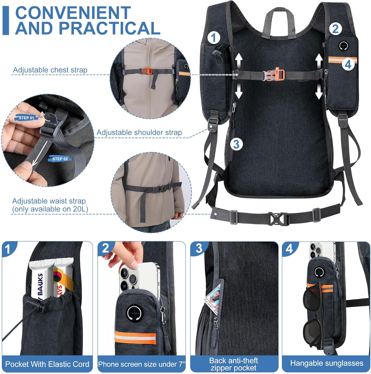 - Organized Multi-Pocket Design: With a capacity of 20L, this lightweight backpack for travel features several compartments, including a front elastic mesh pocket, a front zippered pocket, 2 water bottle holder, and a rear anti-theft zippered pocket, keeping your essentials organized and accessible.