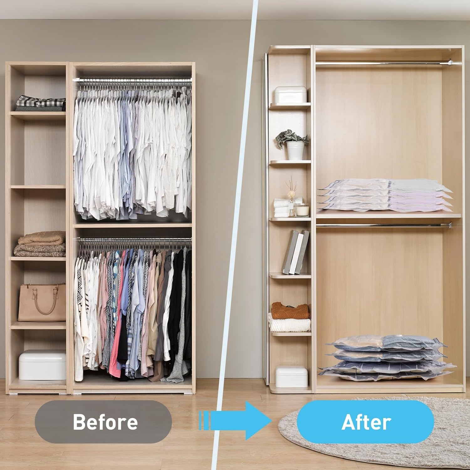 - INCREASE 80% STORAGE SPACE IN A FASTER WAY: Beglero vacuum storage bags add more room to your clothes storage & wardrobe, lofts & suitcase by 4 times. Our vacuum sealer bags can be used for a variety of items including clothes, comforters, pillows, duvet, beddings, etc.