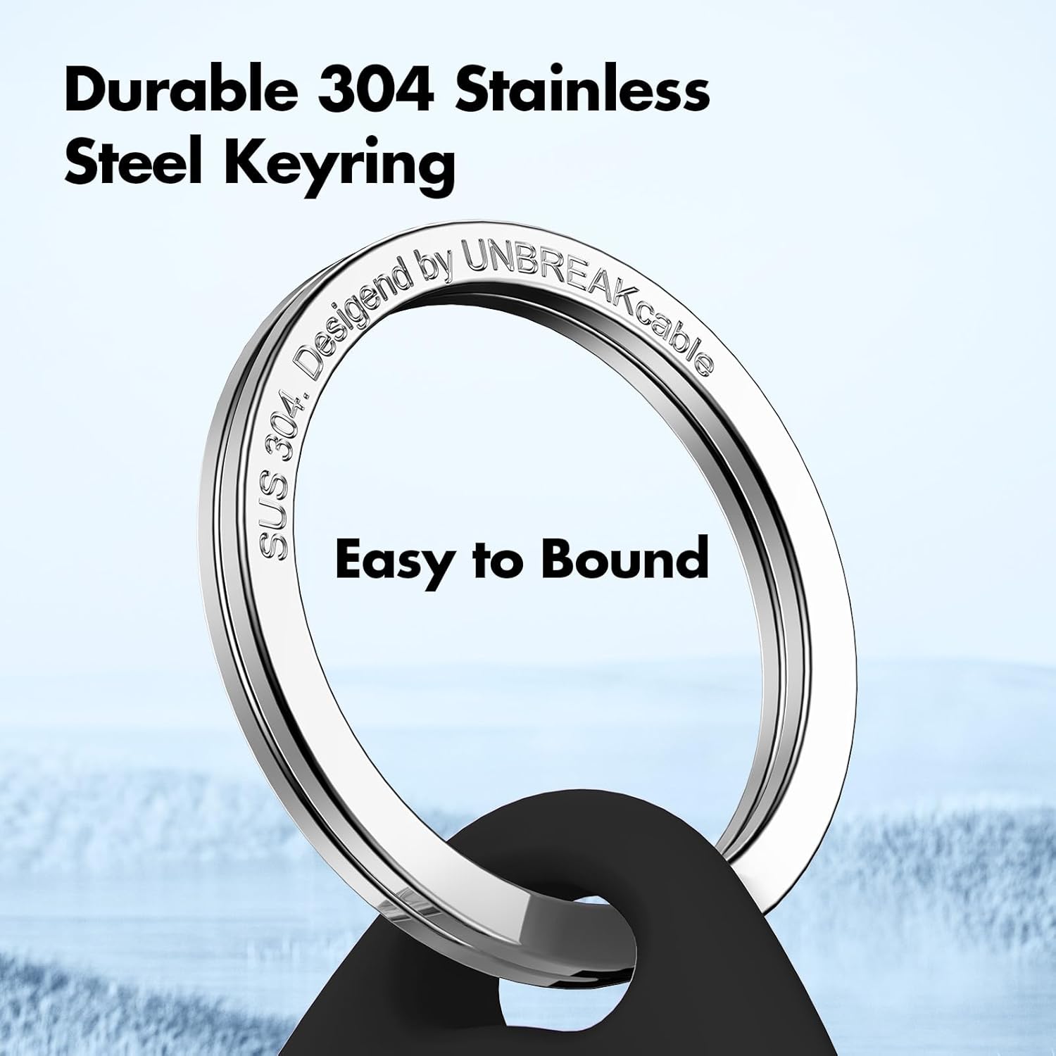 UNBREAKcable Holder for Apple AirTag 4 Pack [Hold Air Tag Securely] [Easy to Install] [Fit Tightly Design] Protective Case Waterproof TPU Shell with 304 Stainless Steel Key Ring Keychain, Black