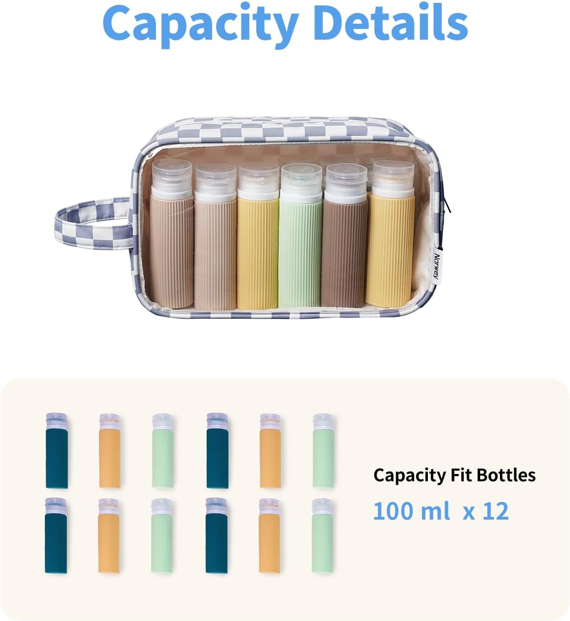 Narwey Clear Toiletry Bags for Traveling Women Men, Clear Travel Bags for Toiletries Makeup Bag Cosmetic Bag with Zipper, Make Up Organizer, Skincare Bag (Grayish Blue Checkerboard)