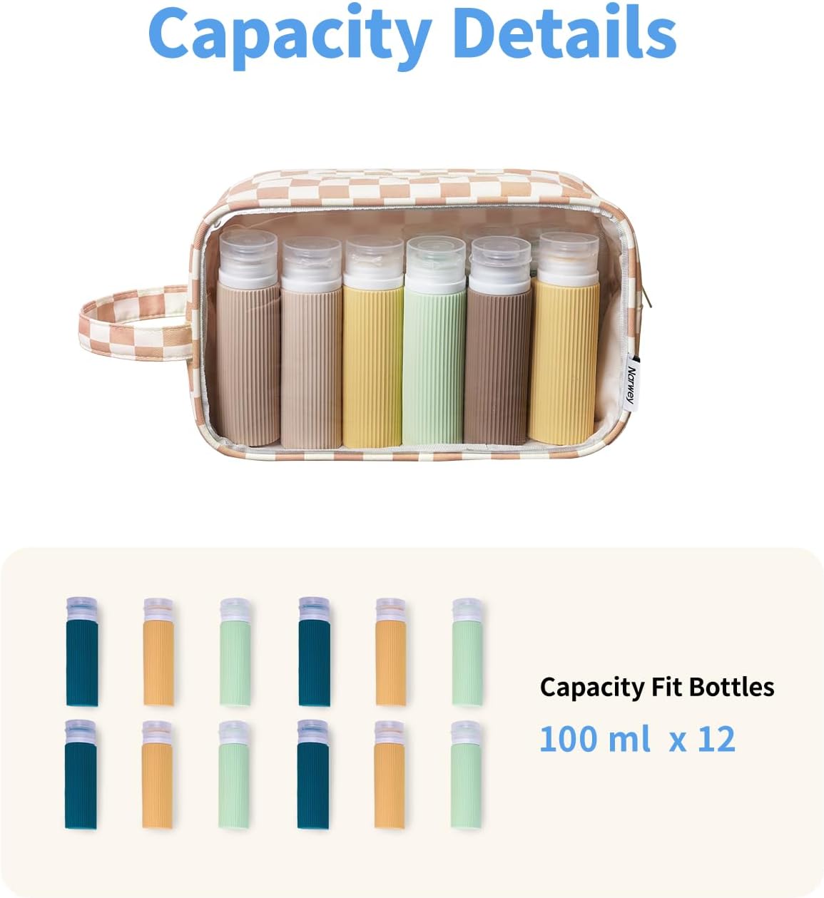 Narwey Clear Toiletry Bags for Traveling Women Men, Clear Travel Bags for Toiletries Makeup Bag Cosmetic Bag with Zipper, Make Up Organizer, Skincare Bag (Light Checkerboard)