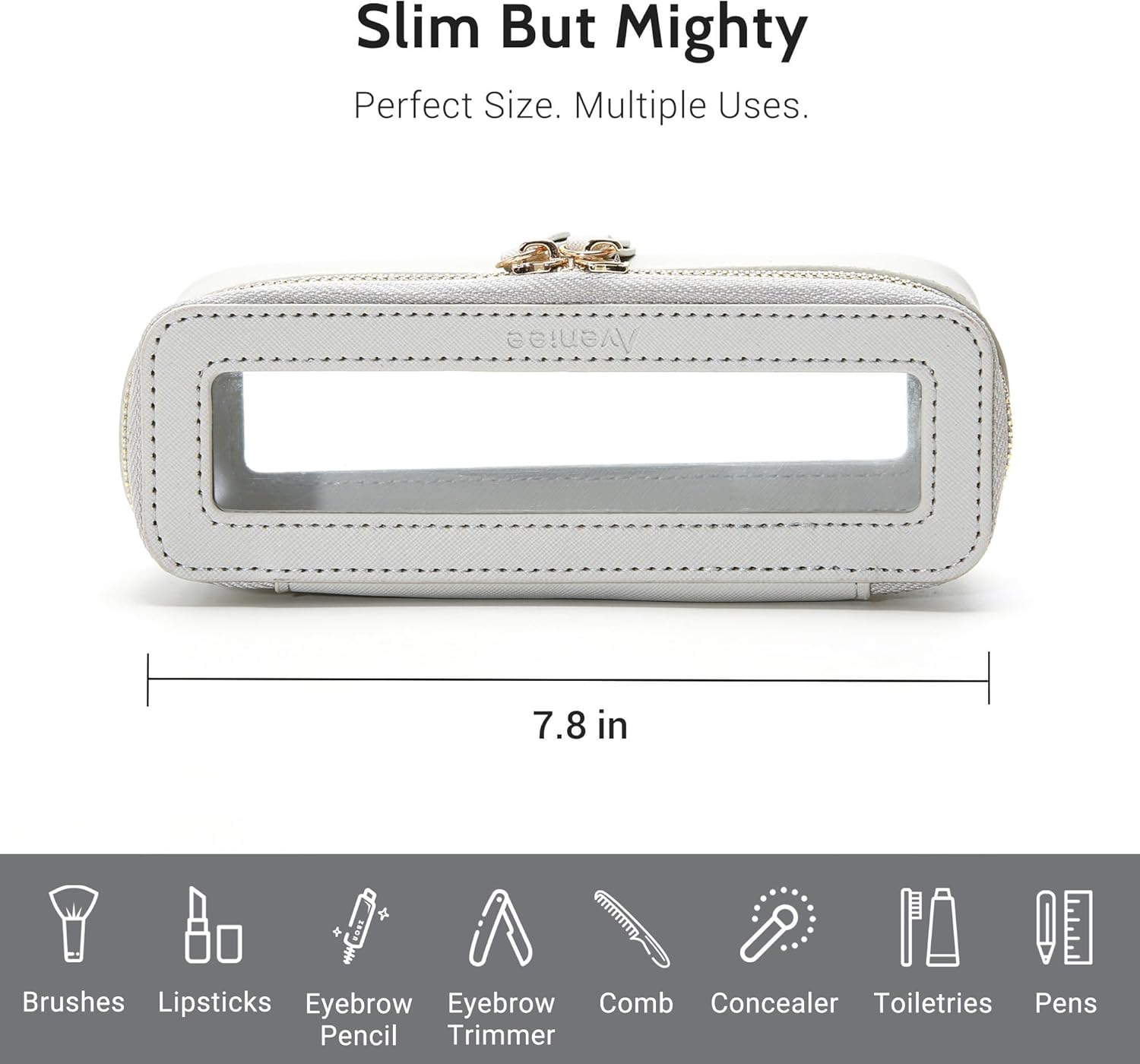 Aveniee Clear Makeup Brush Bag, Slim Brush Holder Cosmetic Case, Small Travel Toiletry Bag for Women, Thin Make up Bags with Zippers, Cute Travel Essentials Srorage Bag.Grey