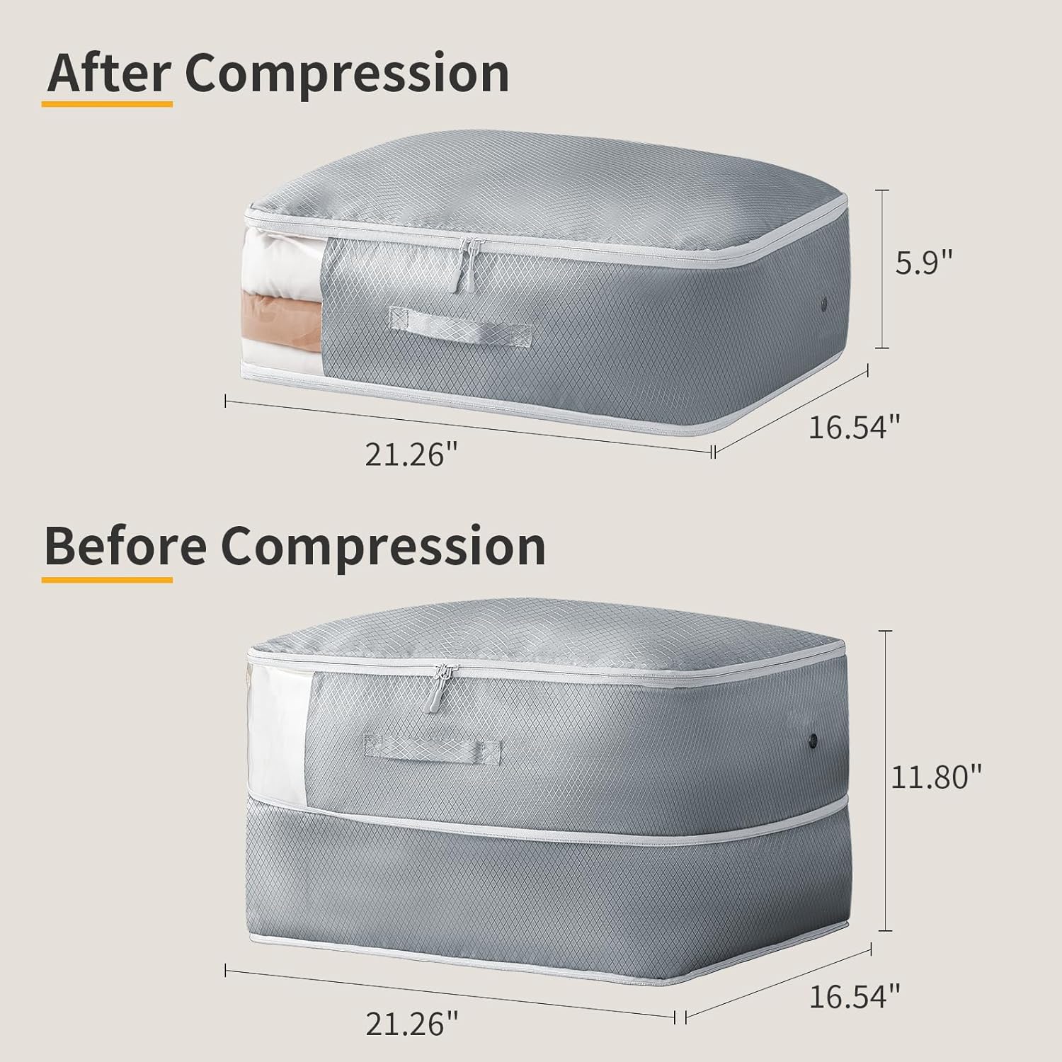 Comforter Storage Bag 66 L - 3 Pack Blanket Storage Organizer Compression Bags, Large Capacity Ultra Space Saving Self Organize for Bedding, Pillow, Duvet, Sheet Storage with Zipper Window