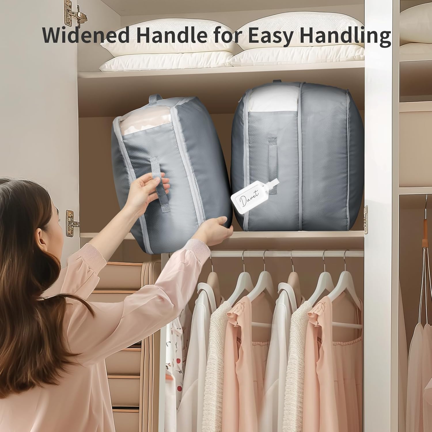 - Just the Right Size: Our bags are designed to hold a lot without taking up too much space. Each one can easily fit a large winter comforter or 6-8 down jackets. They’re perfect for decluttering your closet and keeping your seasonal items organized and ready to go