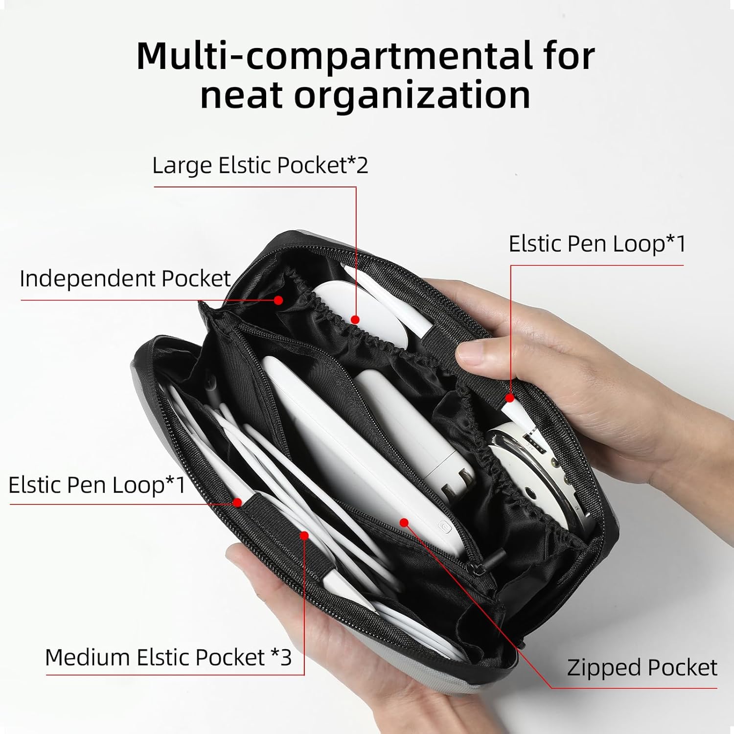 - Compact & Portable Electronic Organizer:9.64"×5.7"×2.95" - perfectly sized for daily use or travel to store chargers, USB cables, power banks, hard drives, docking stations, earphones, and other tech essentials.
