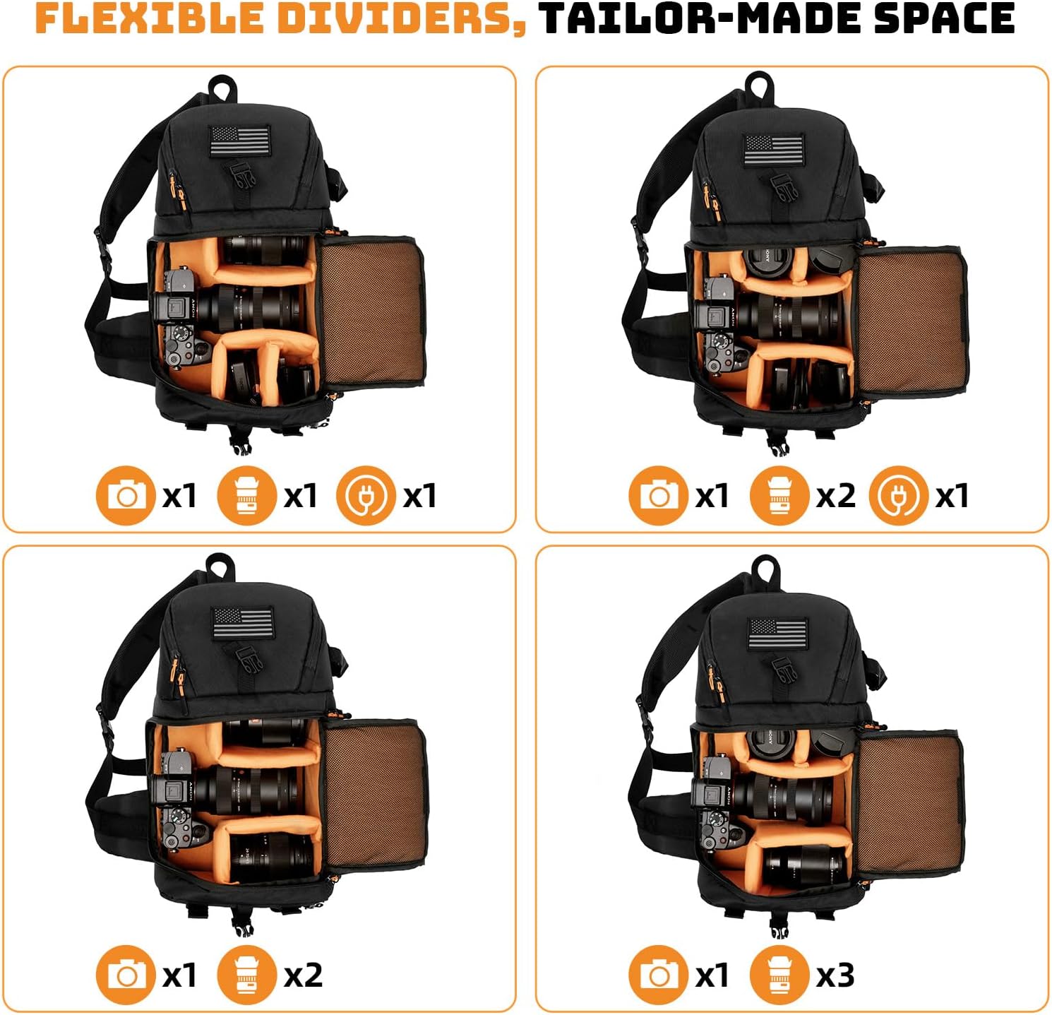 Camera Sling Bag for Photographers - Waterproof Single-Shoulder Camera Case with Adjustable Dividers, Rain Cover & Side Tripod Pocket