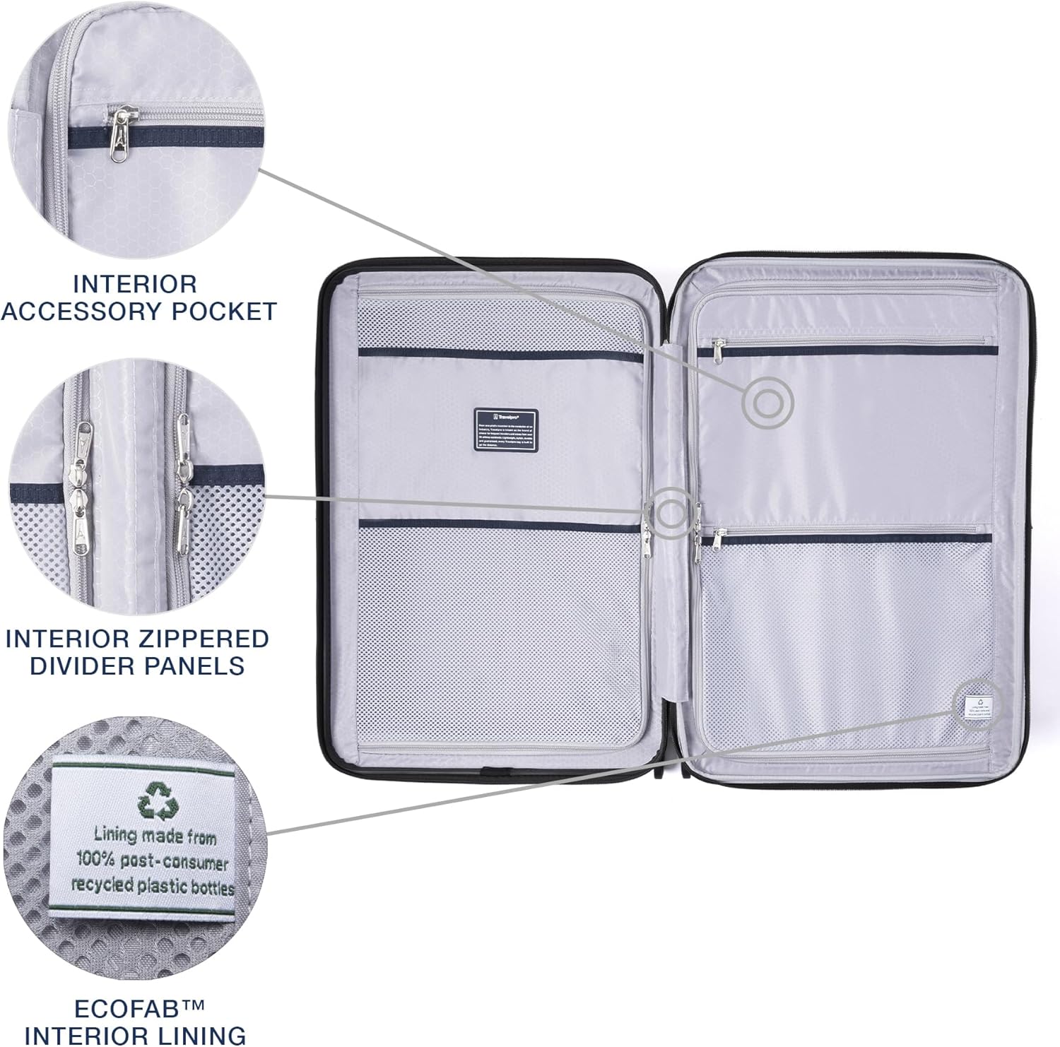 - DURABLE AND ECO-FRIENDLY: Polycarbonate material flexes on impact to mitigate cracking. Reinforced internal corner guards resist denting. 100% Recycled Bottles ECOFAB Lining reduces environmental waste