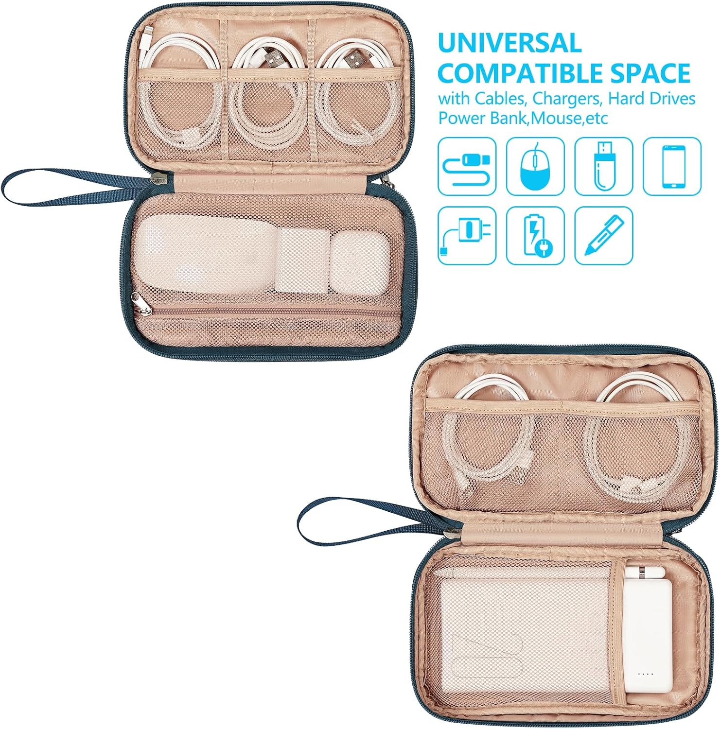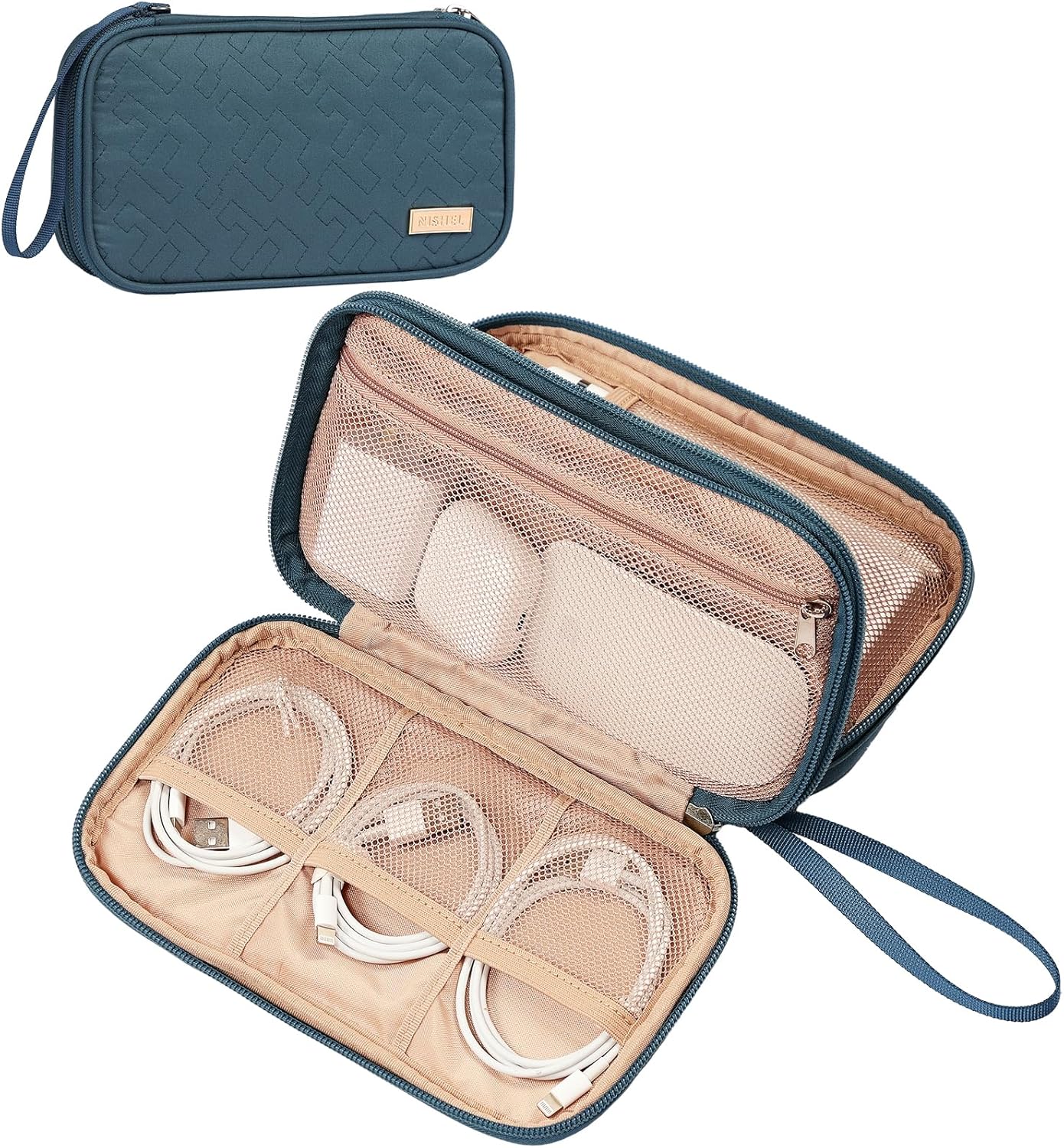 NISHEL Travel Cord Organizer Case, Double Layers Tech Electronic Bag, Essentials for Charger, Cable, Phone, Flash drive,Lake-Blue