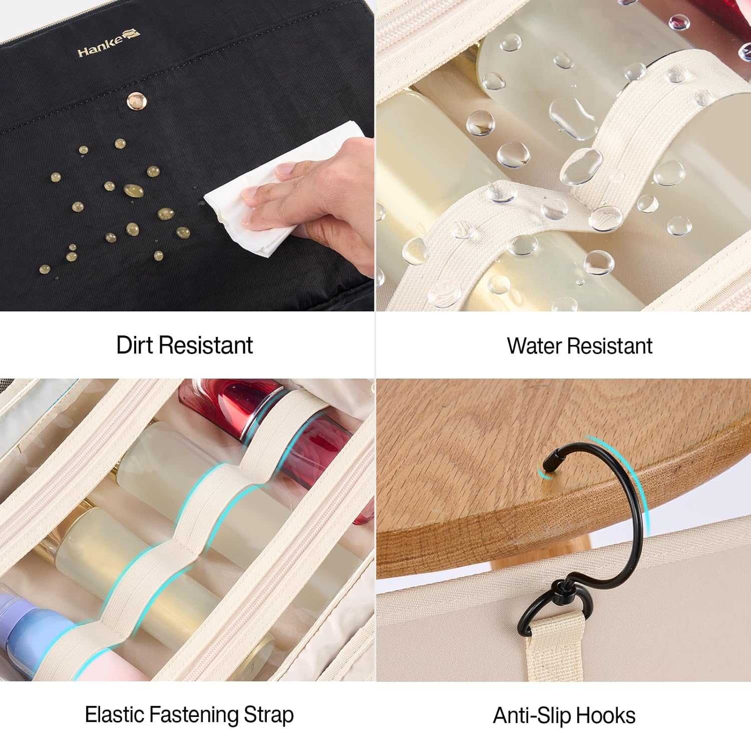 - 【Tangle-Free Jewelry Storage Design】Hanke Hanging Travel Toiletry Bag is designed with an exclusive jewelry compartment for necklaces, rings, earrings, bracelets and more. Reasonable subarea arrangement, neat and orderly, goodbye to clutter.