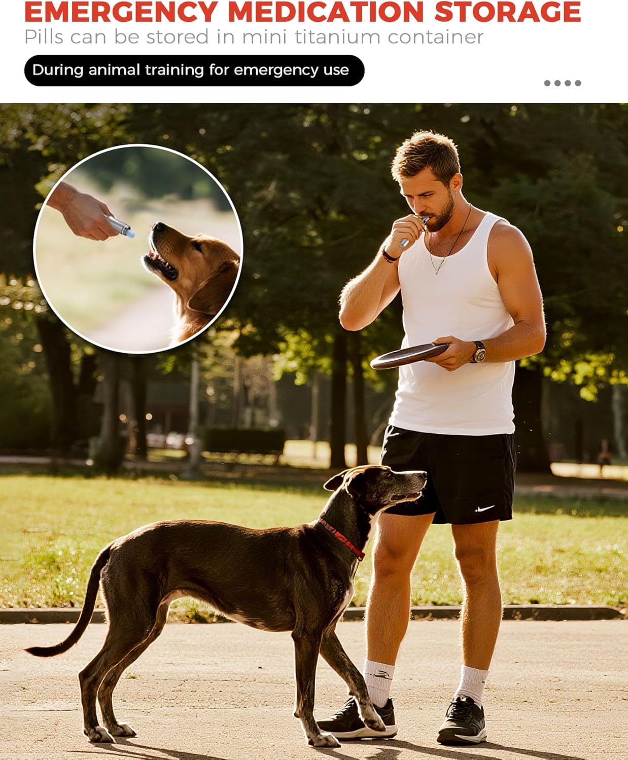 3-in-1 Fire Starter Survival Tool -Titanium Emergency Whistle, Kerosene Lighter & Mini Pill Holder, IPX8 Water-Resistant, Dust-Resistant, Compact for Hiking, Camping, Rescue(Fuel not Included)
