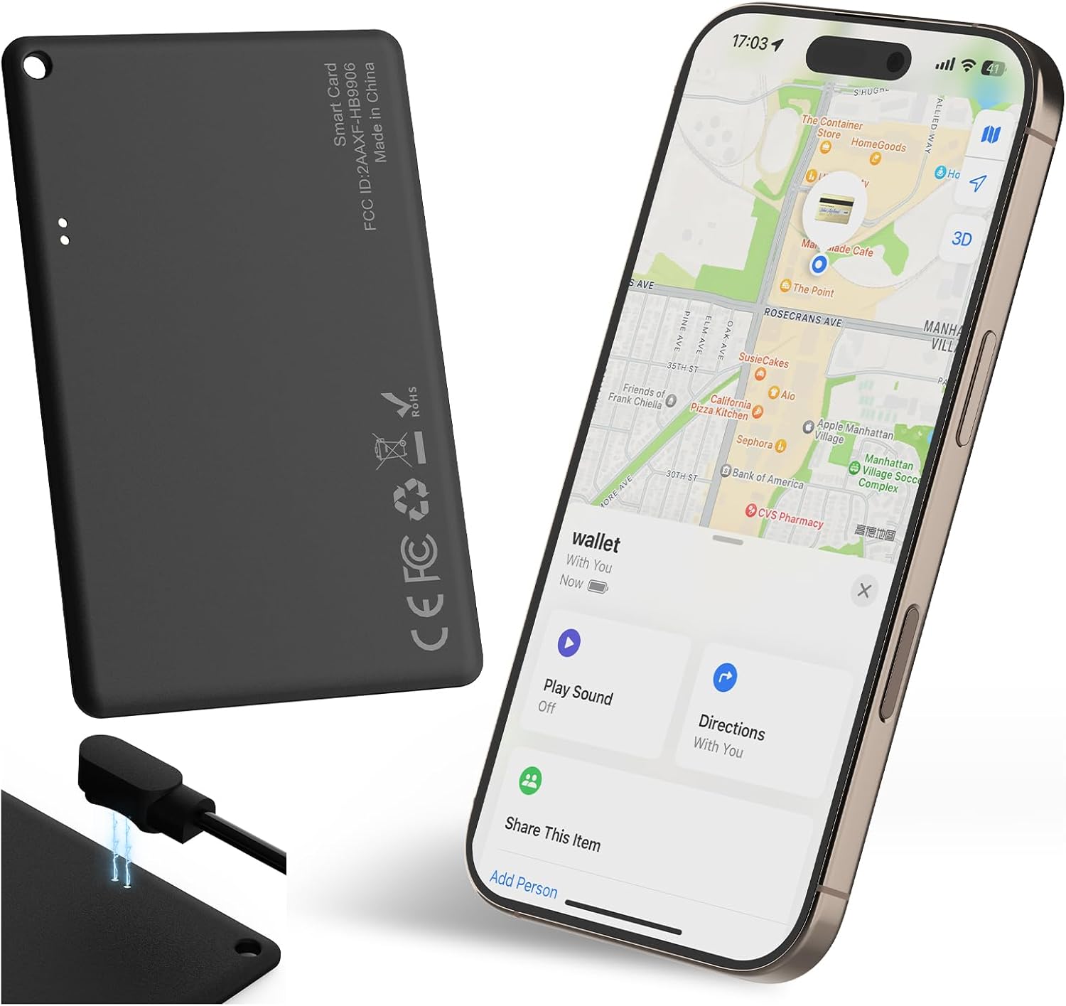 - 【Locate Items with Find My】This smart wallet tracker locate items within bluetooth connectivity range by playing the 85-95 dB alarm sound on the Find My App. The loud alarm sound ensures you can be heard in noisy environments. If it's far away, you can navigate on the map to find its location.