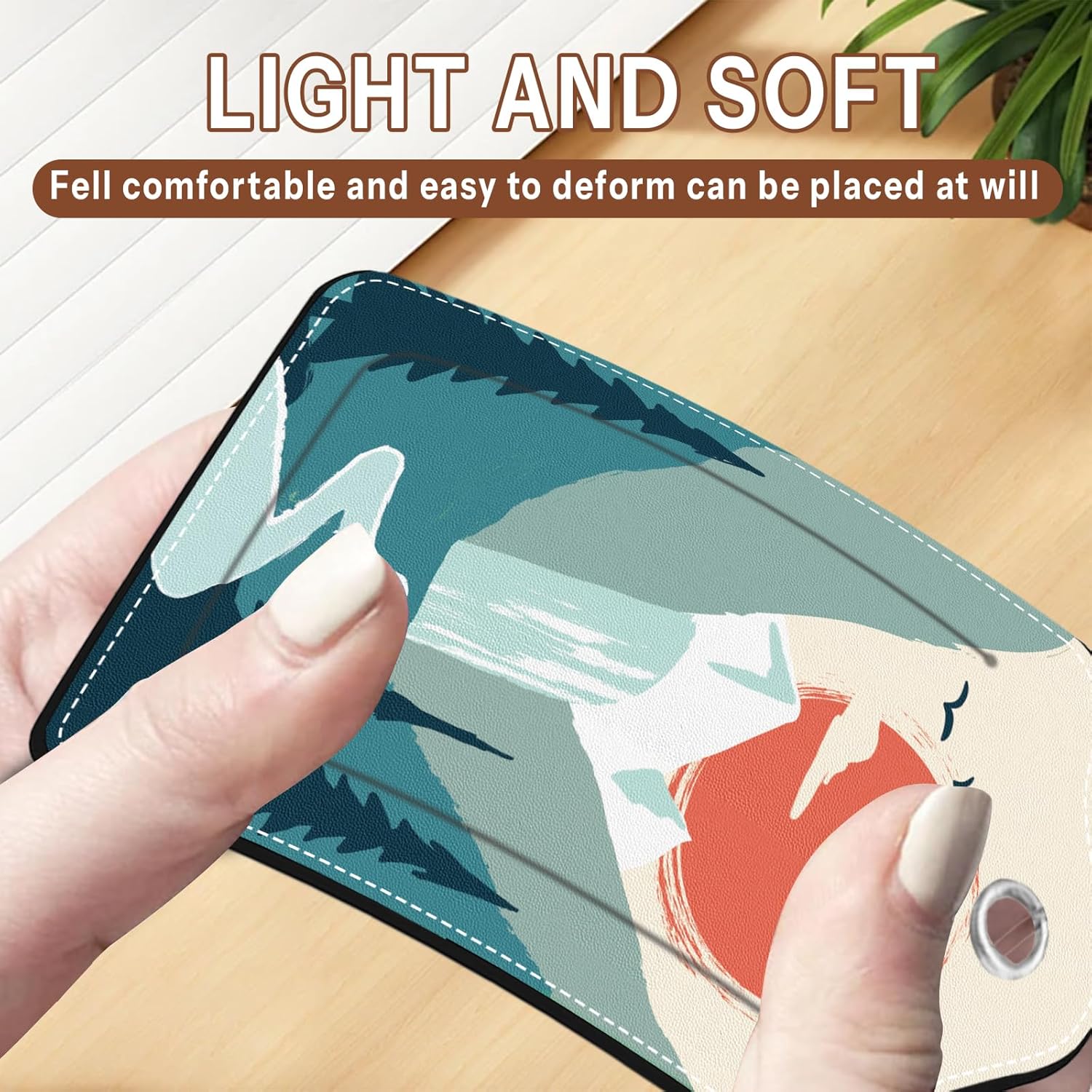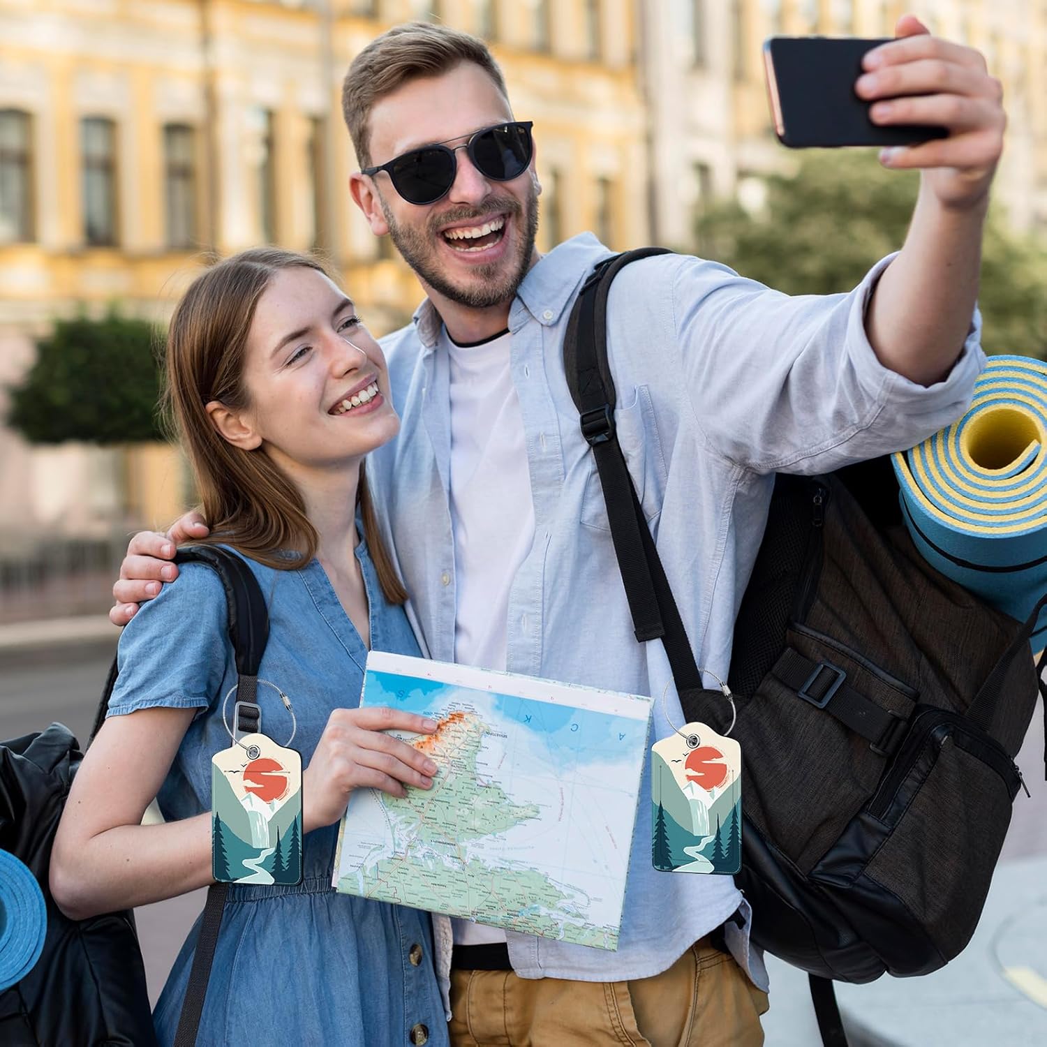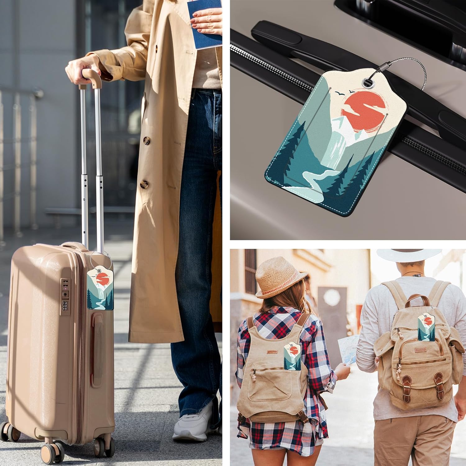 2 Pcs Mountain Sun Luggage Tags for Suitcases Men, Leather Luggage Tags for Men, Privacy Cover ID Label with Stainless Steel Loop & Address Card, Fun Travel Bag Tags Luggage Accessories for Suitcases