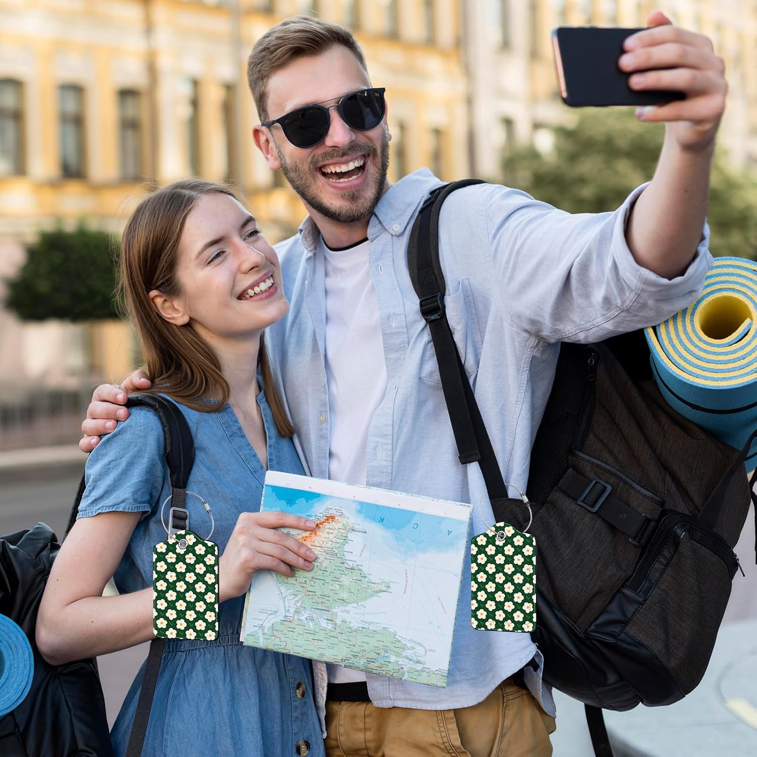 2 Pack Floral Luggage Tag for Women, Green Leather Luggage Tags for Suitcases Waterproof, Name ID Labels with Privacy Cover Suitcases Bag Luggage Tags for Travel, Travel Accessory Luggage Tag