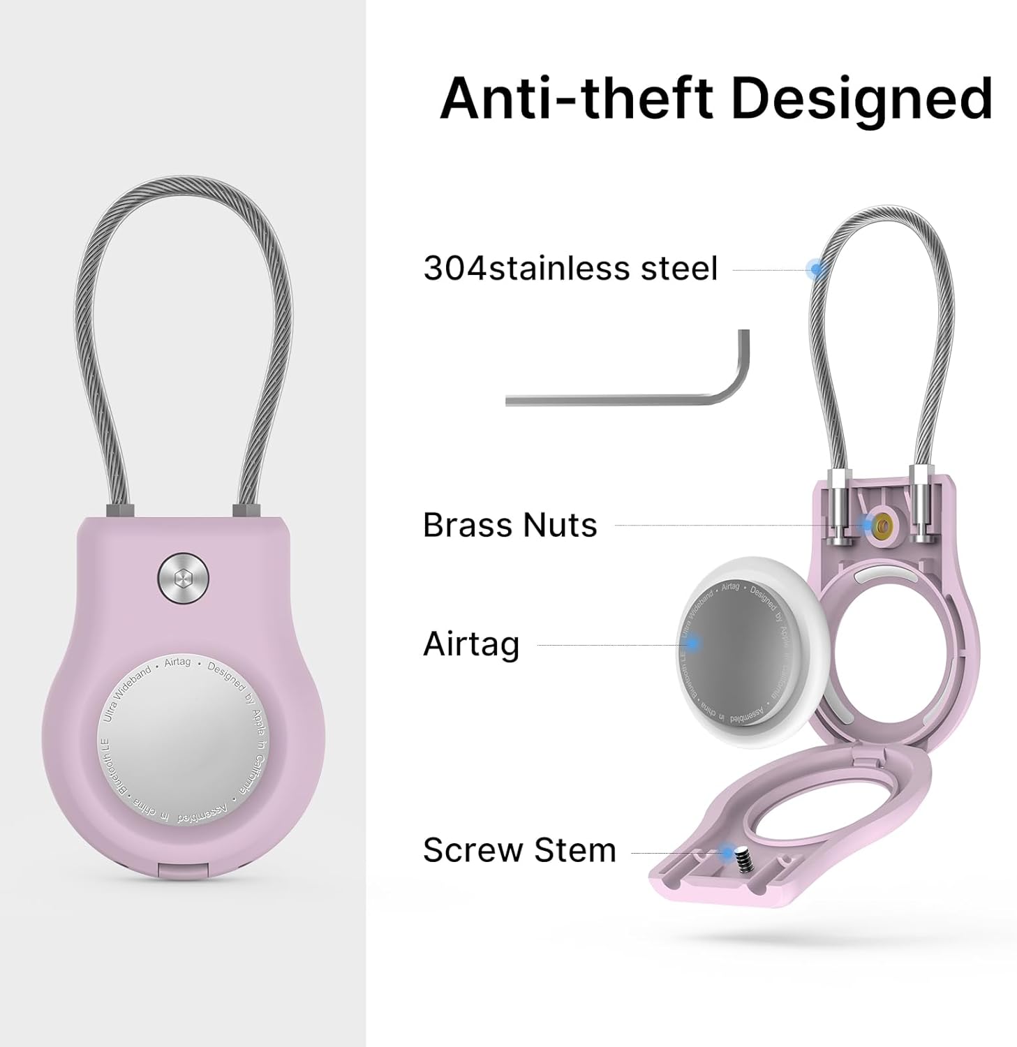 - Robust Steel Cable & Easy Setup: Equipped with a cut-resistant steel wire rope, it effortlessly threads through keyholes . Install in seconds: open, insert air tag, loop the cable, and tighten with the included hex key