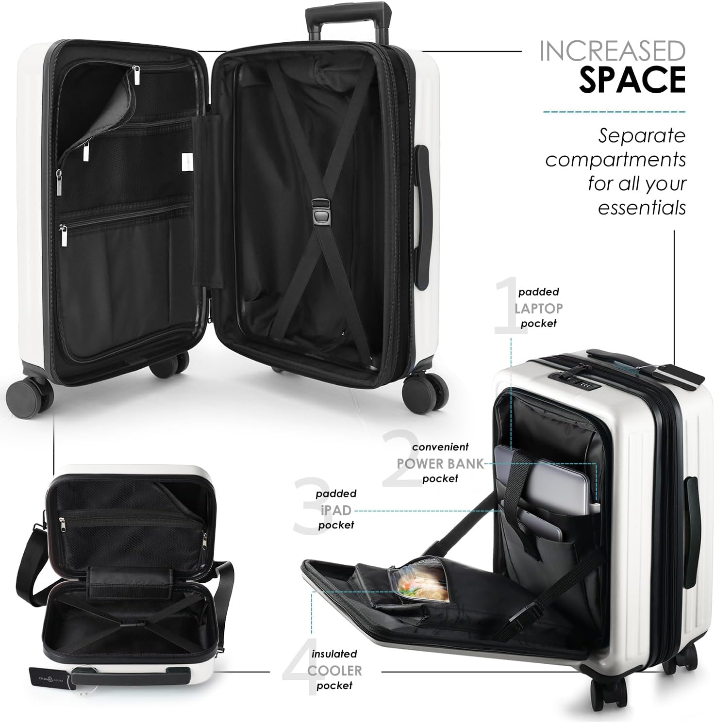 22 Inch Carry On Luggage 22x14x9 Airline Approved, Carry On Suitcase with Wheels, Hard-shell Carry-on Luggage, Durable Luggage Carry-On, White Small Suitcase with Cosmetic Case