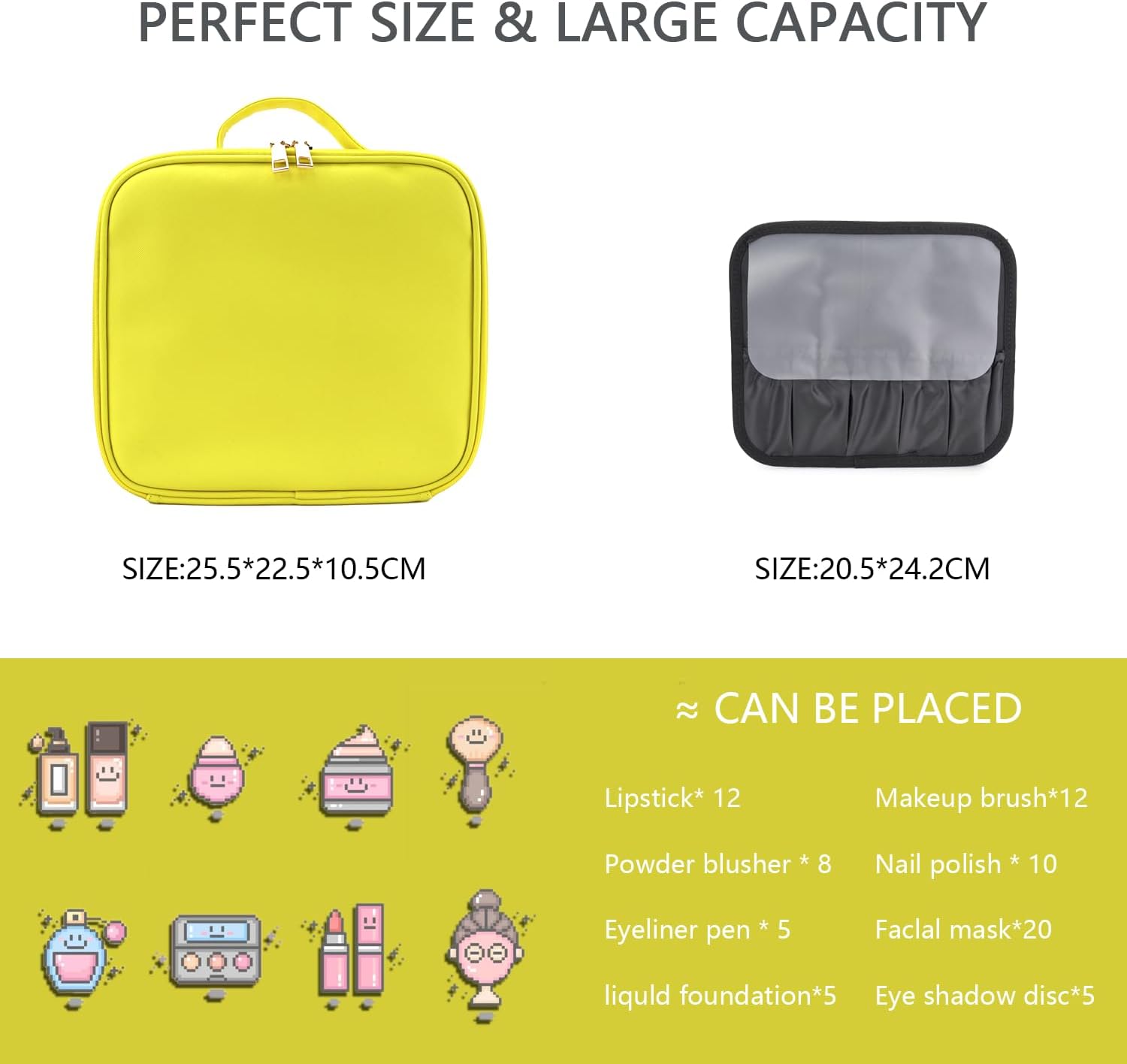 Makeup Bag with Led Mirror,Travel Makeup Organizer with 3 Color Setting, Portable Storage and Adjustable Dividers Travel Makeup Bag(yellow)