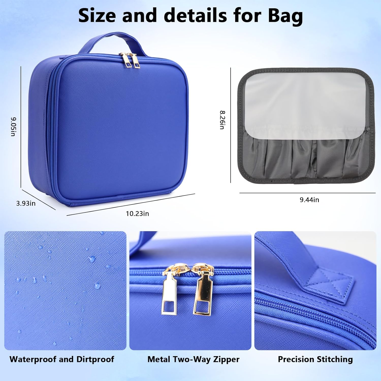 - 【Portable Dressing Table】The large capacity travel makeup bag with LED mirror size is 10.23*9.05*3.93 inch. It is made of high-quality PU leather, which is waterproof, easy to clean, durable and wear-resistant. The zipper system is made to a high standard to ensure smooth pulling.
