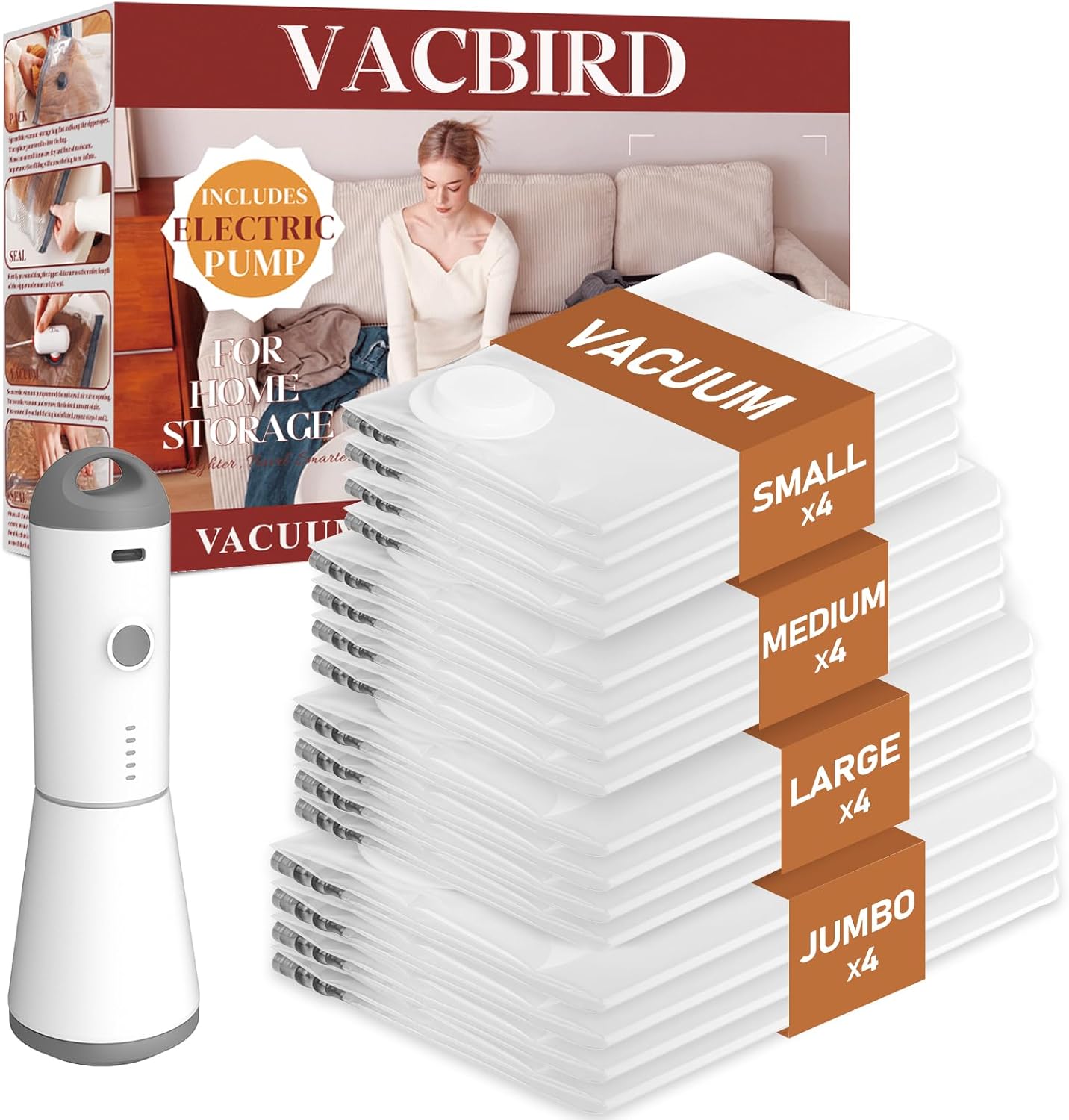 - 4 Sizes for All Needs: Includes 4 Small, 4 Medium, 4 Large and 4 Jumbo vacuum seal bags to fit everything from sweaters to king-size comforters, scientifically designed maximize space efficiency keeping your storage organized and safe.