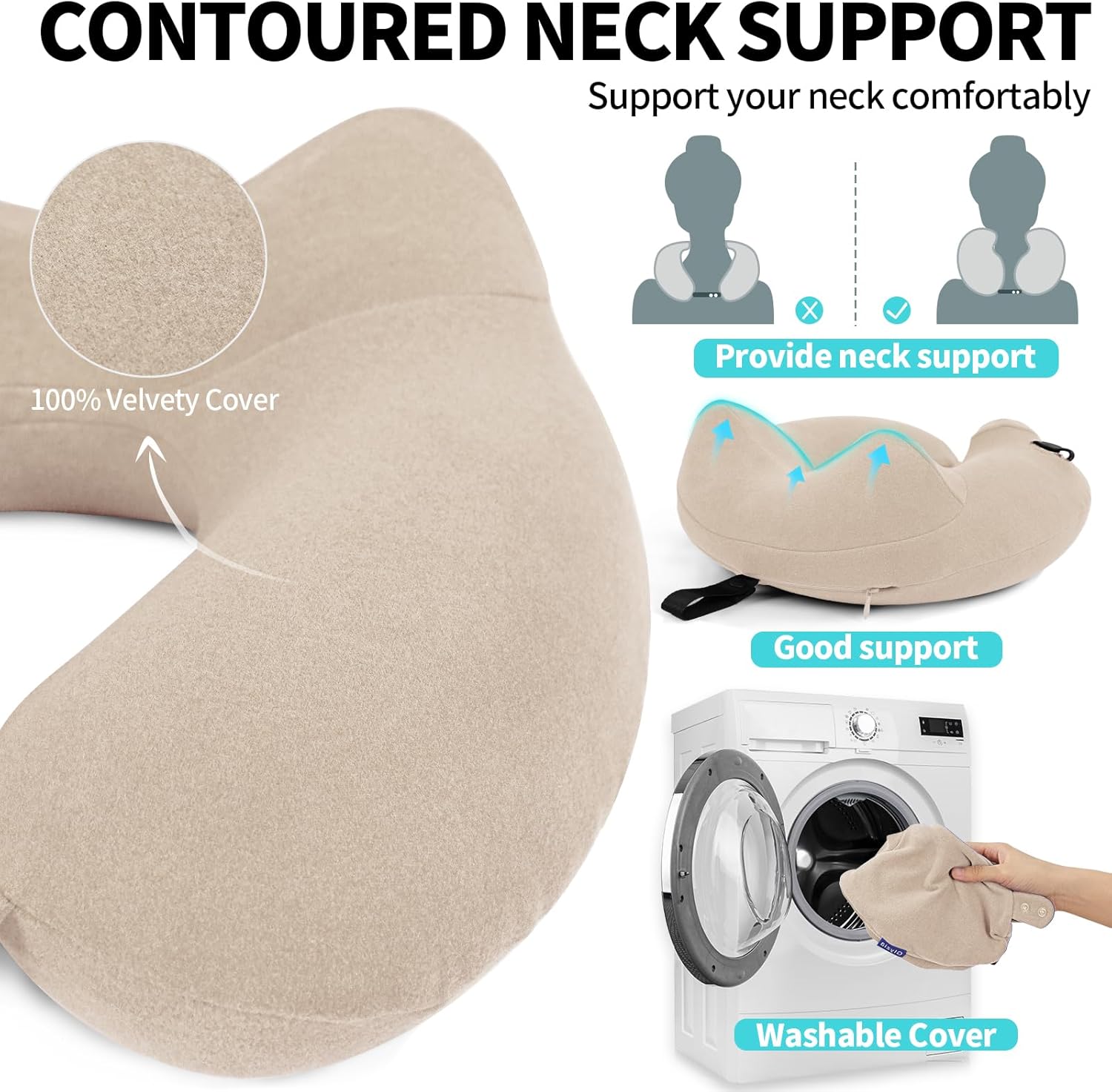 - 【Complete Travel Set】Each set includes 1 U-shaped pillow, 1 eye mask, 1 pair of earplugs, and 1 storage bag—everything you need for a restful journey. Ideal for airplanes, cars, trains, or even the office, providing superior support compared to traditional travel pillows.