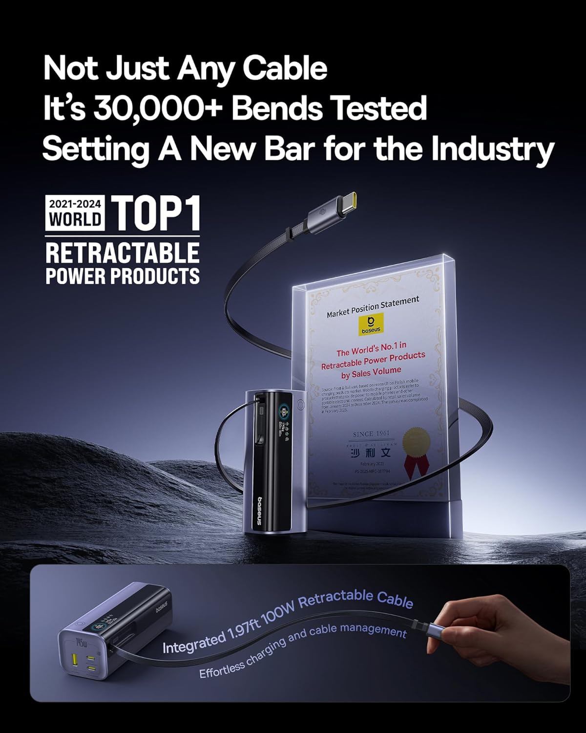 - 2ď¸âŁ ăBuilt-in 100W Retractable Cable (1.97ft)ă Tangle-Free & Durable, no more messy cables! The power bank's built-in retractable USB-C cable pulls out for instant charging and retracts with a gentle tug. Tested to withstand 30,000 stretches, itâs built for convenience and longevity.