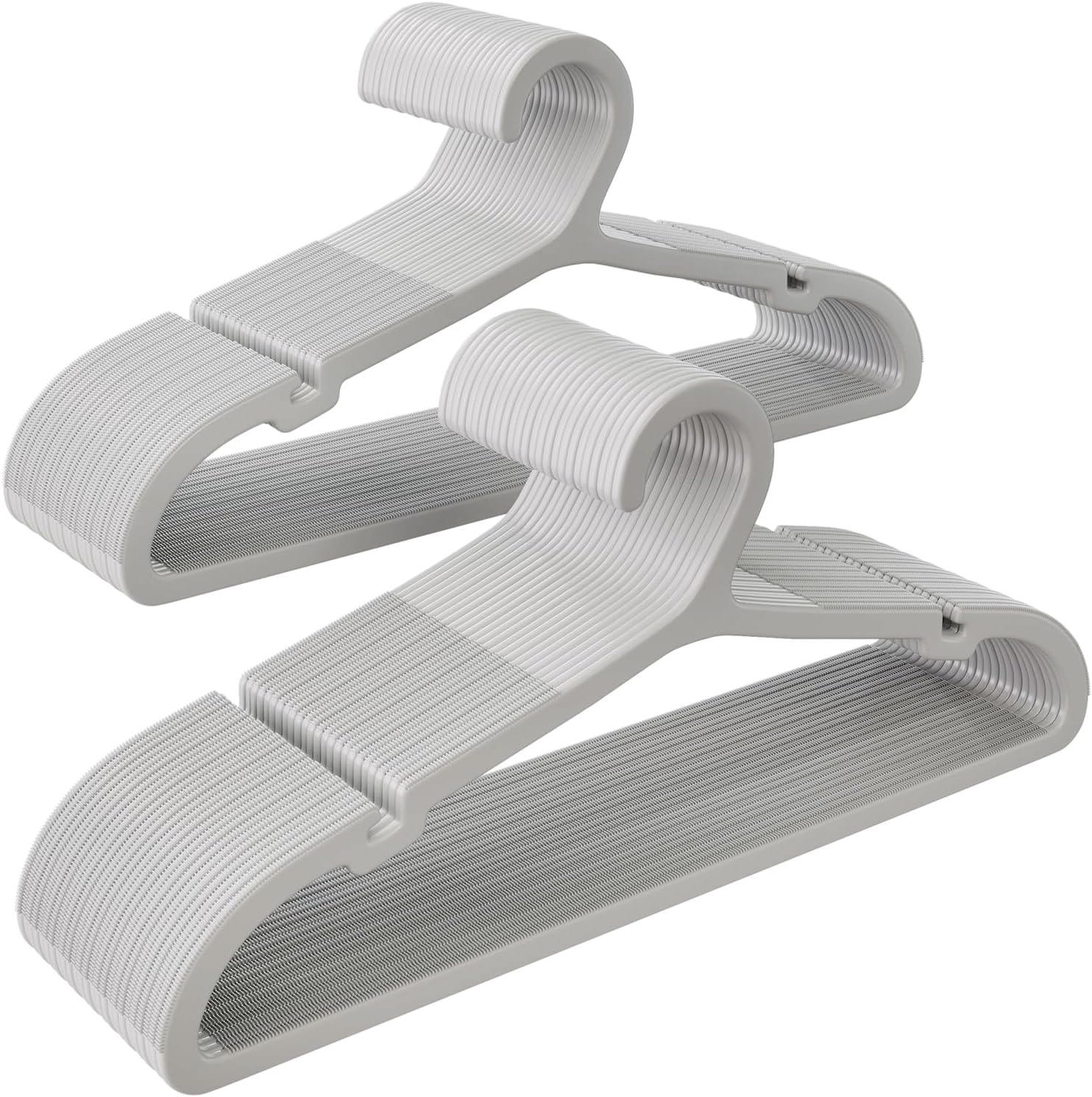 50 Pack Clothes Hangers, Non Slip Plastic Coat Hangers, Space Saving Hangers, Heavy Duty, Hanging Dry Wet Clothes, 16.4" x 8.3", Gray, APY0550G