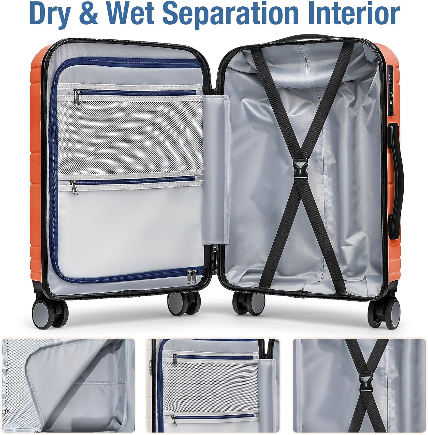 KYME Carry On Luggage 22x14x9 Airline Approved with TSA Lock Hard Shell Carry On Suitcase Lightweight Suitcases with Wheels Small Luggage for Men Women,Carry-On 20 Inch,Orange