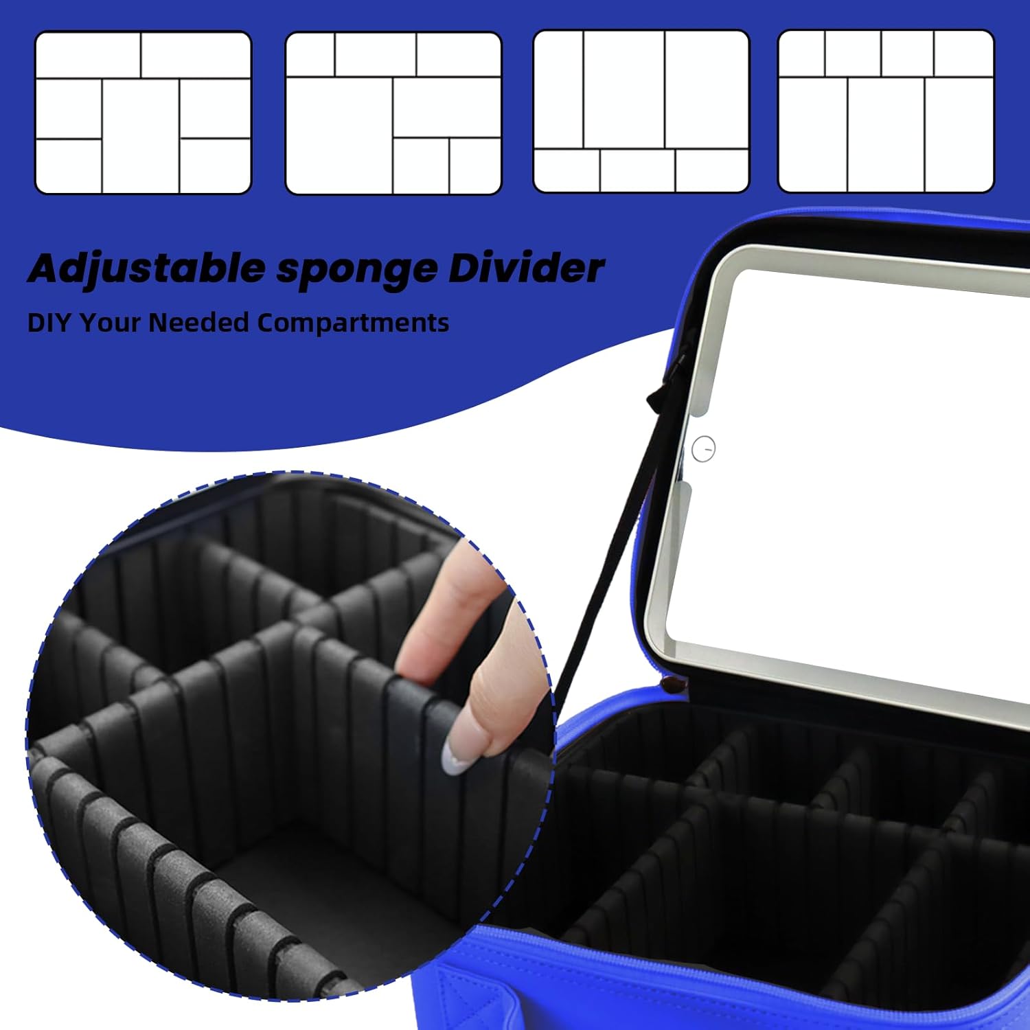 Travel Makeup Bag with LED Mirror and Light Makeup Travel Bag Organizer Portable Cosmetic Brush Organizer Bag with Adjustable Dividers for Cosmetics Makeup Brushes Toiletry (Dark Blue)