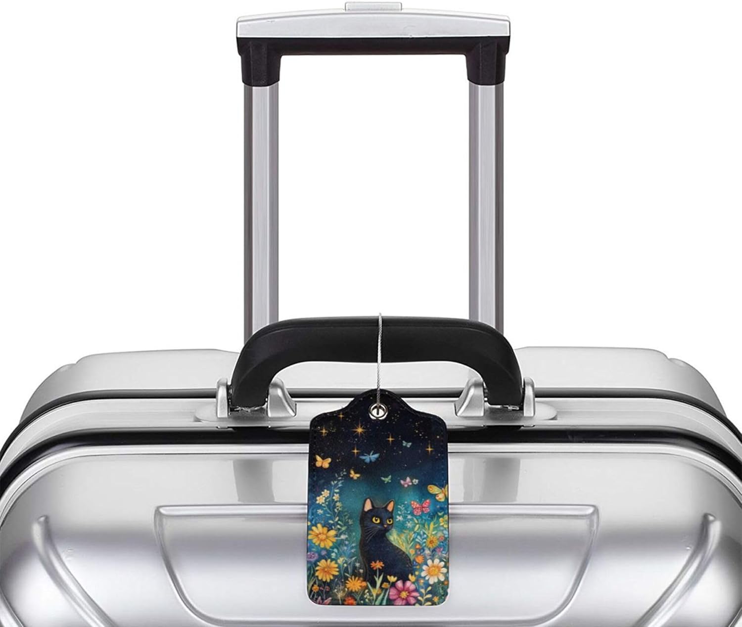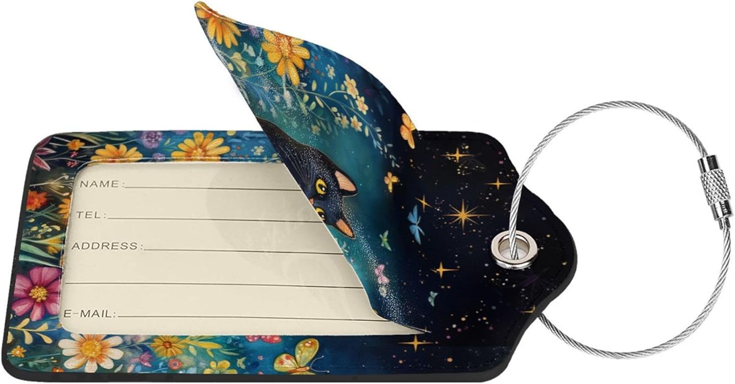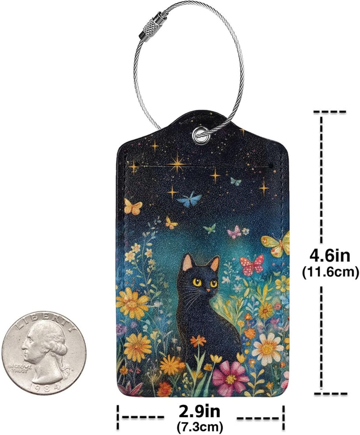 2 Pack Luggage Tag for Suitcase, Cute Unique Leather Suitcase Tags Identifiers with Privacy Name Address Labels & Durable Steel Loop for Women Men Travel