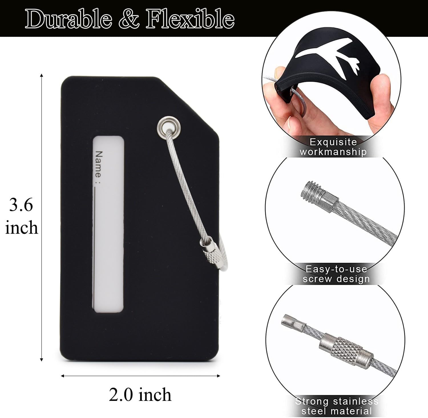- 【Flexible & Durable】Our luggage tags Made of quality durable Silicone ability to bend without breaking. The reinformed metal hoop will ensure that your bag tags will be attached to your belongs all the time.