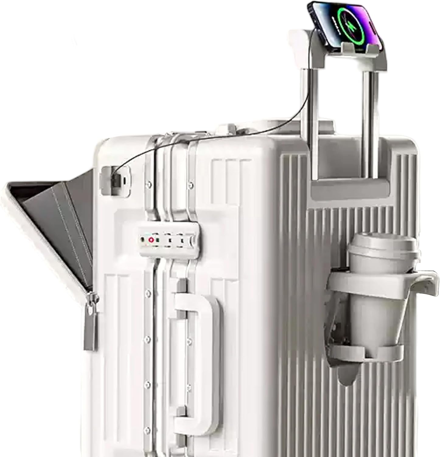 2-Piece Hardshell Zipperless Luggage Set, 20/26" Aluminum Frame Hardshell Spinner Luggage, Airline Approved Carry-On Luggage, TSA Lock, 360° Quiet Wheels With Cup Holder (White)