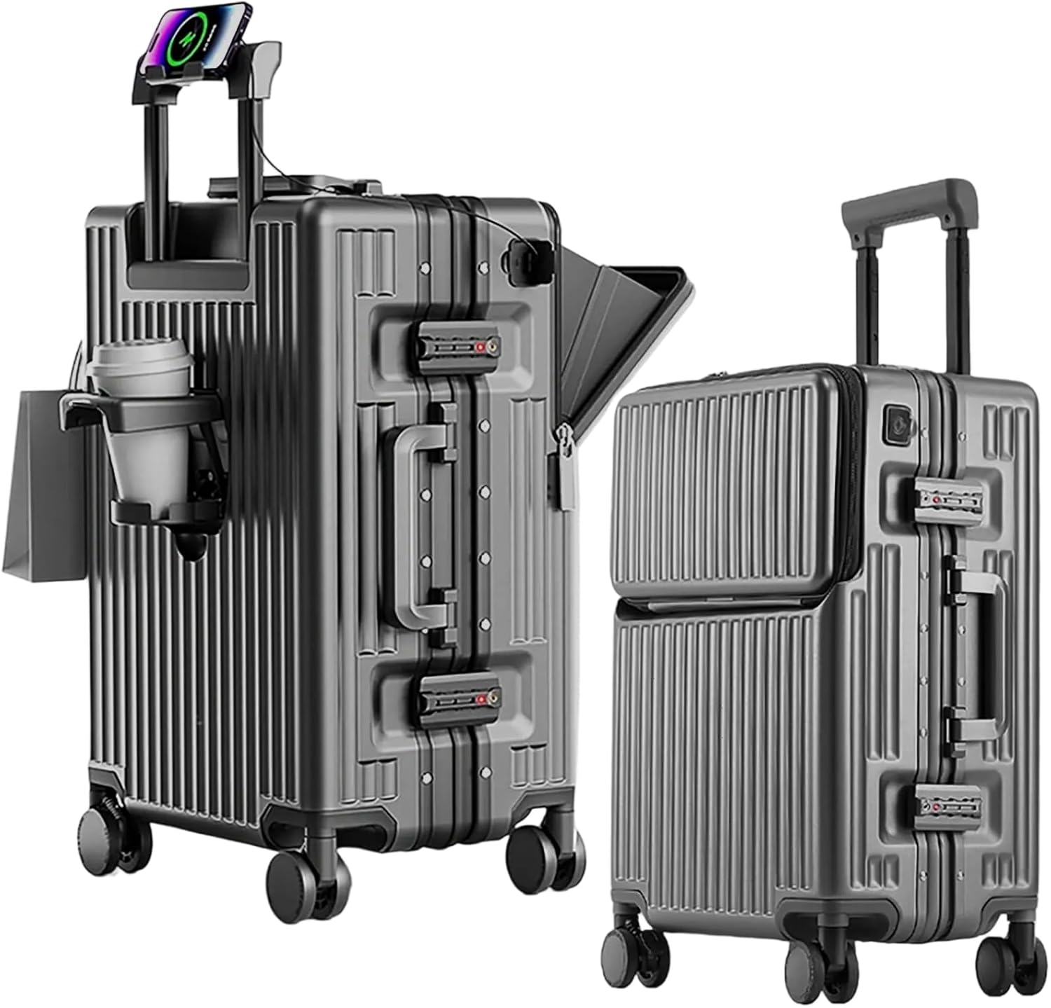 2-Piece Hardshell Zipperless Luggage Set, 20/26" Aluminum Frame Hardshell Spinner Luggage, Airline Approved Carry-On Luggage, TSA Lock, 360° Quiet Wheels With Cup Holder (grey)