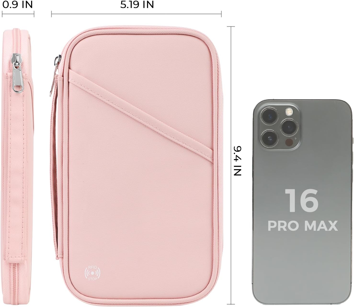 Travel Passport Wallets, Airtag Lightweight Family Passport Holder With RFID Blocking Passport Cover Case Waterproof Bag Document Organizer for Men and Women-pink