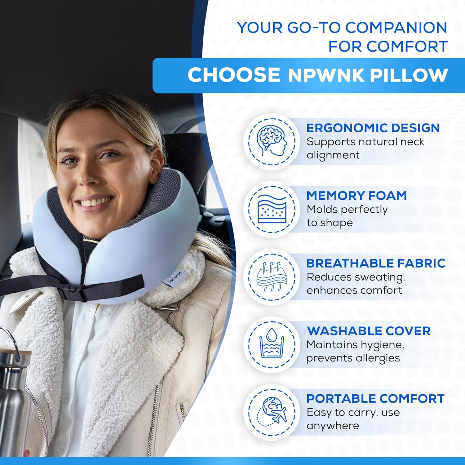 - ๐๐ซ๐ ๐จ๐ง๐จ๐ฆ๐ข๐ ๐๐๐๐ค ๐๐ง๐ ๐๐ก๐ข๐ง ๐ ๐ข๐ญ: The memory foam airplane pillow features a contoured design that supports your neck and chin to help reduce head movement while seated. The adjustable buckle of the airplane neck pillow lets you customize the fit during any trip.
