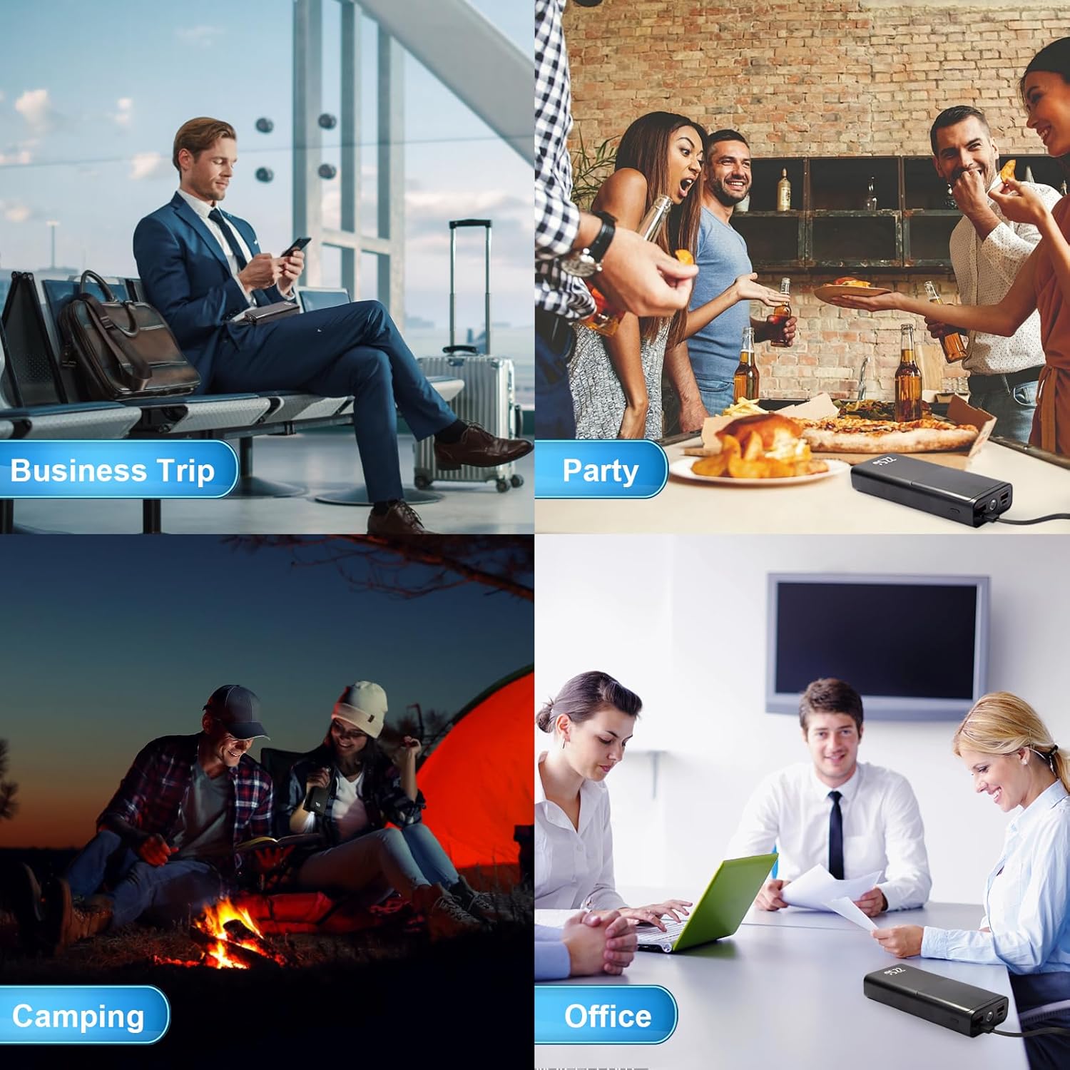 - 【Premium Metal Shell Portable Charger Power Bank】Crafted with ruggedized aluminum alloy casing, withstands 1.5m drop tests and extreme temperatures (-20°C~60°C), this 20000mAh metal power bank is also engineered for construction site operations and outdoor adventures. The CNC-machined body enhances heat dissipation efficiency by 40% versus plastic models, maintaining stable 22.5W output during continuous use in desert expeditions