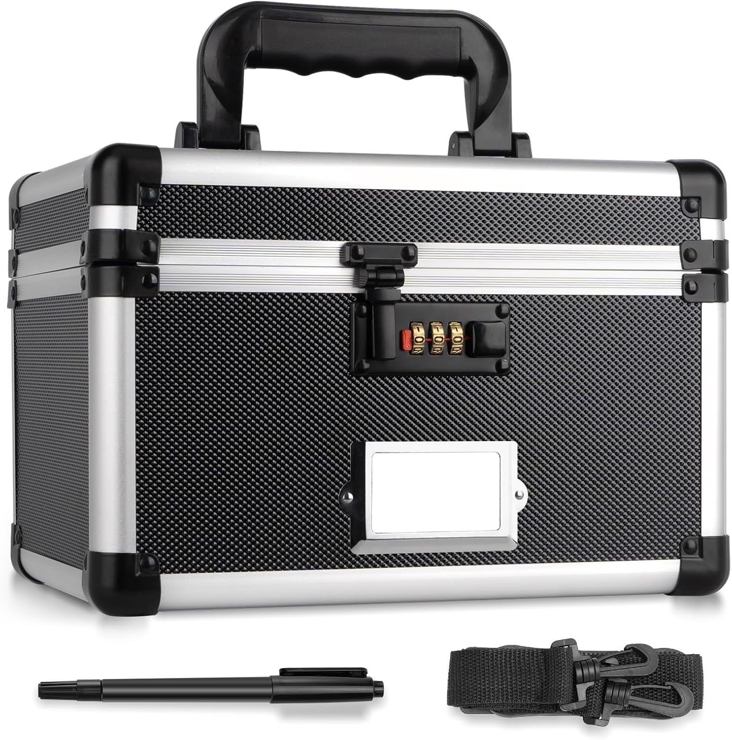 11 x 7 x 8.3 Inch Lockable Storage Box with Combination Lock, Portable Safe for Documents, Medicine, Cash & Valuables, Medicine Lock Box with Label Slot for Home, Office & Travel - Black
