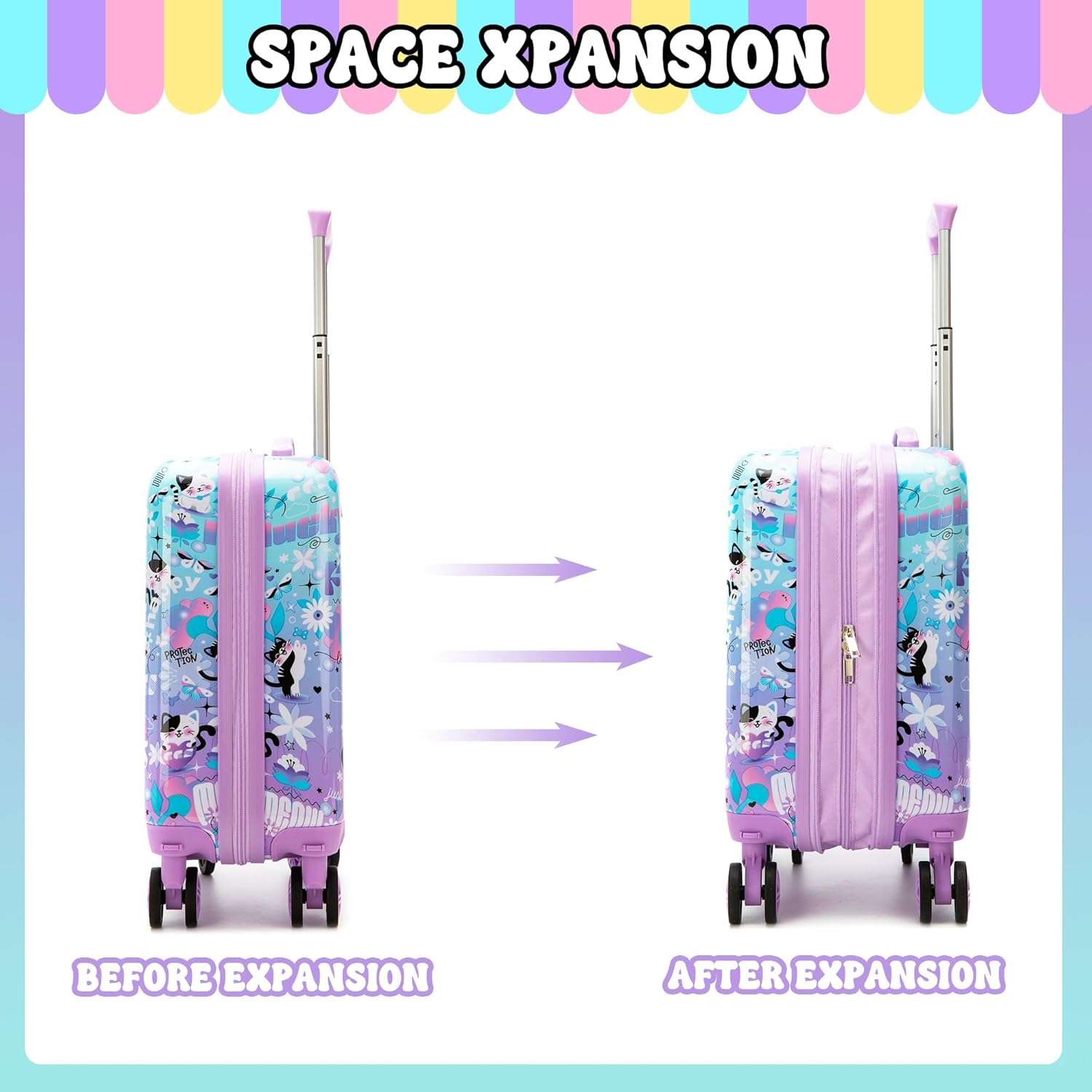 - Durable and lightweight design: Made from high-quality materials, this luggage set is built to withstand the rigors of travel and easy for kids to carry. Carry On Suitcase: Cabin sized, 4 Wheels,